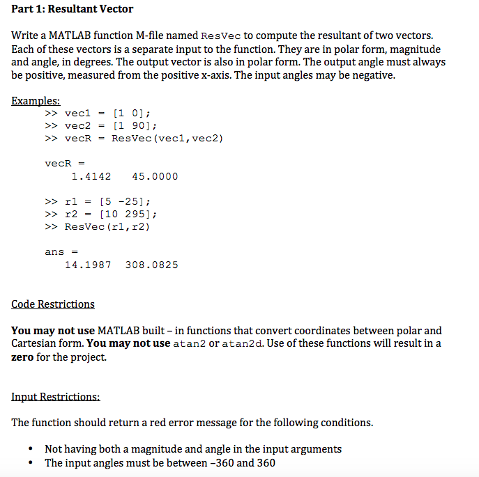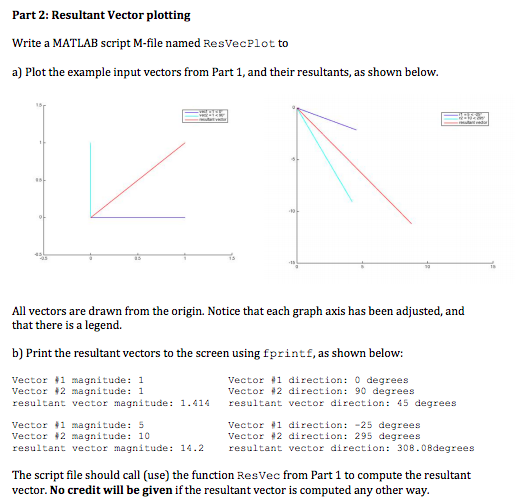 Part 1: Resultant Vector Write a MATLAB function M-file named ResV...