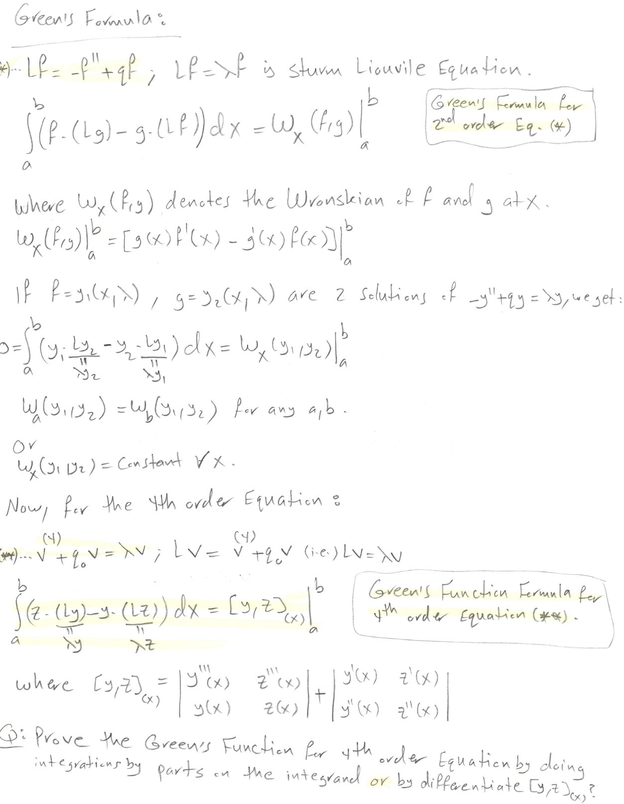 Green's Formula: x) Lf= f"+qf; Lf=>f is sturm Liouvile Equ...