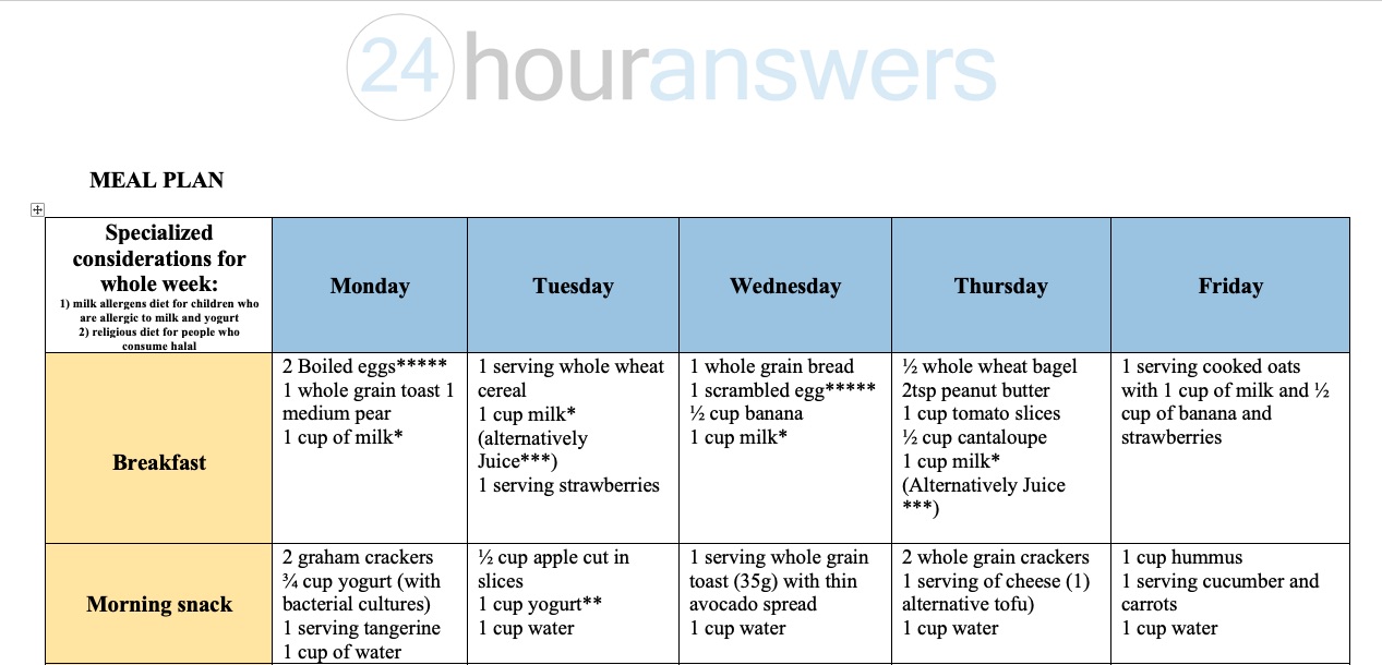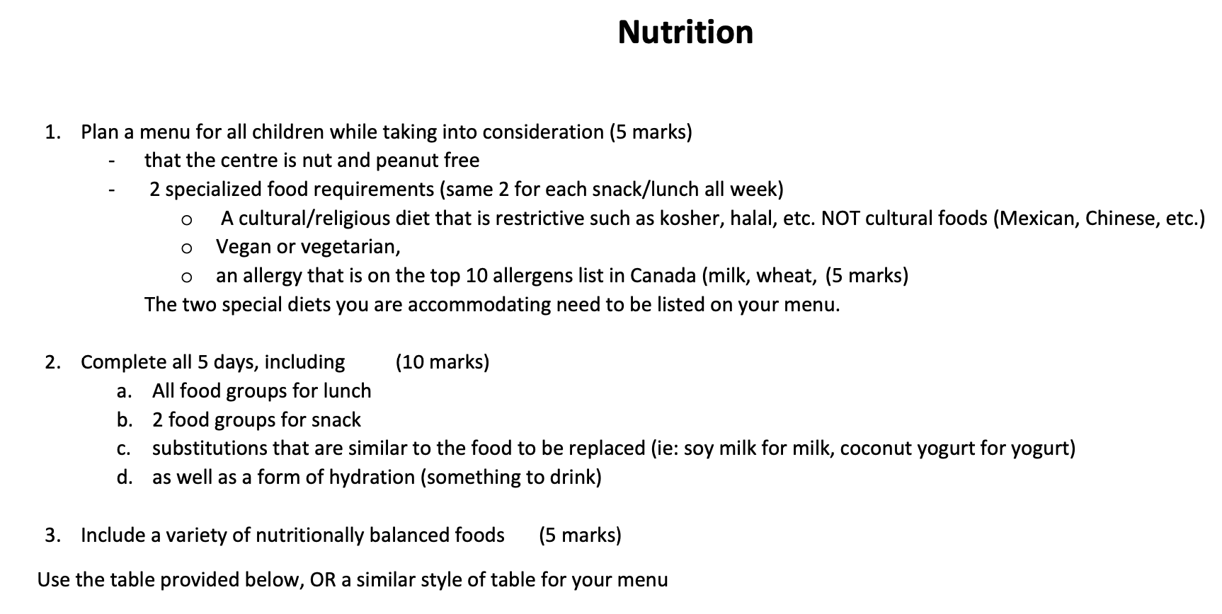 Nutrition 1. Plan a menu for all children while taking into cons...