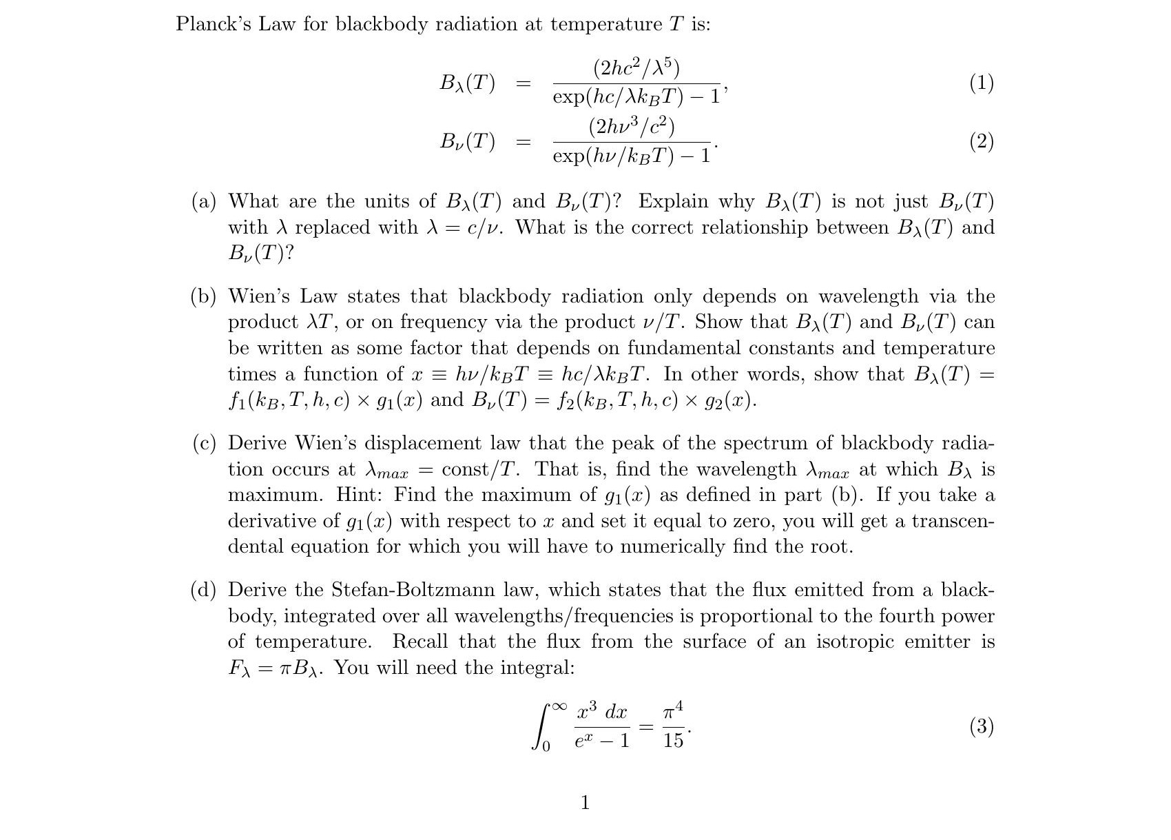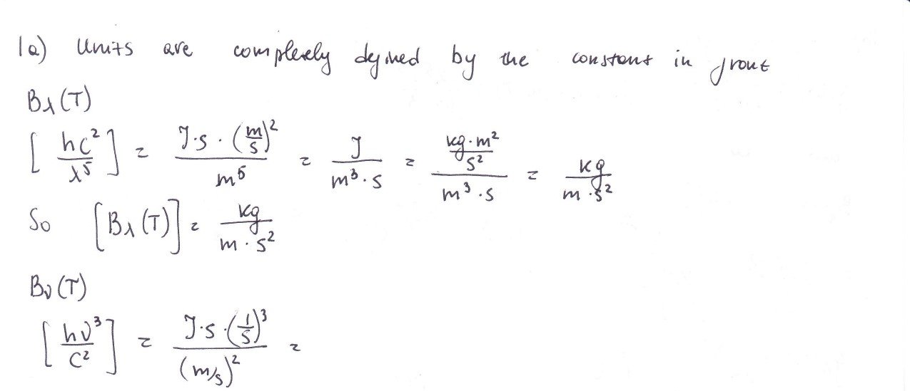 Planck's Law for blackbody radiation at temperature T is: (1) (2h...