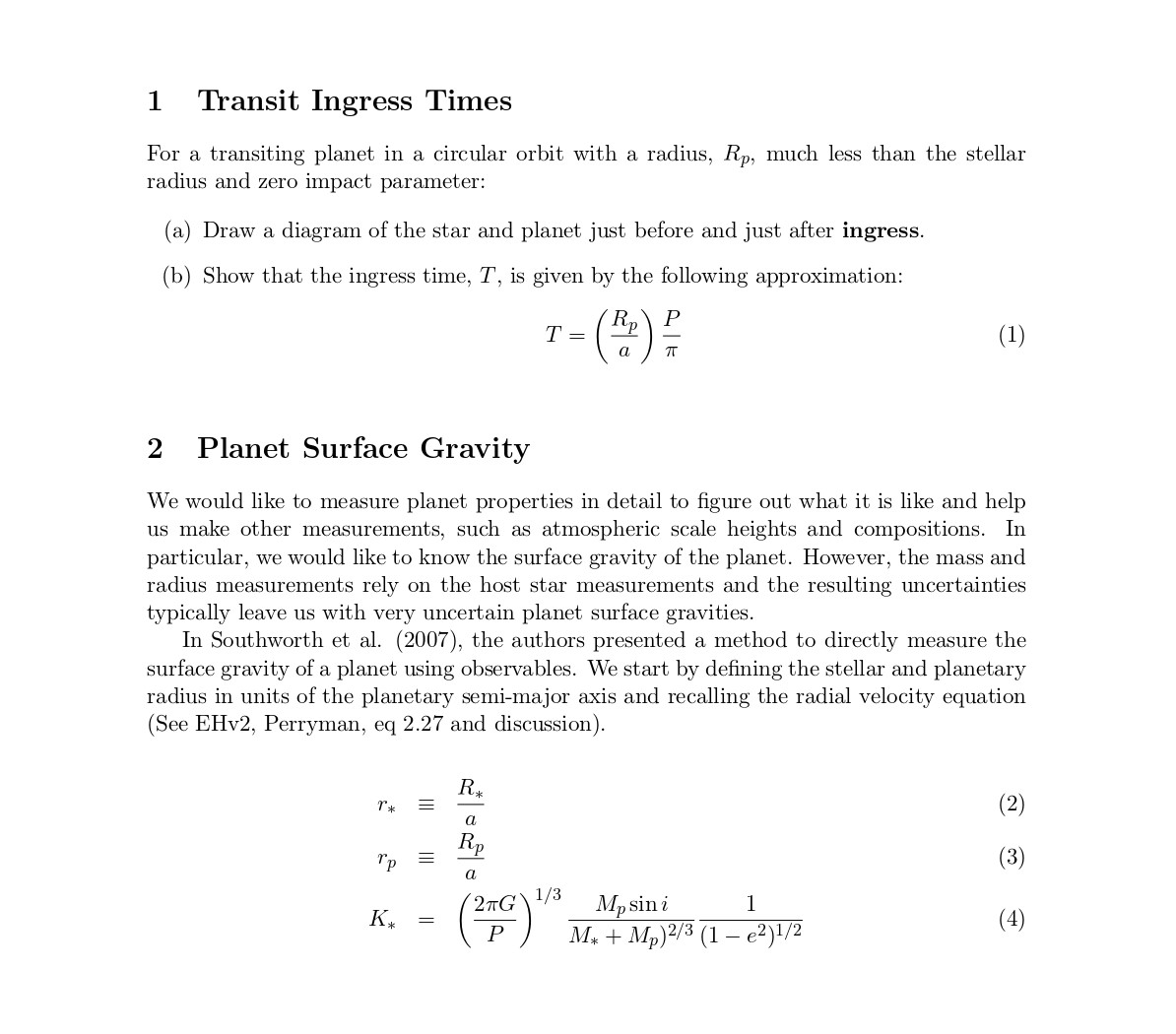1 Transit Ingress Times For a transiting planet in a circular orb...