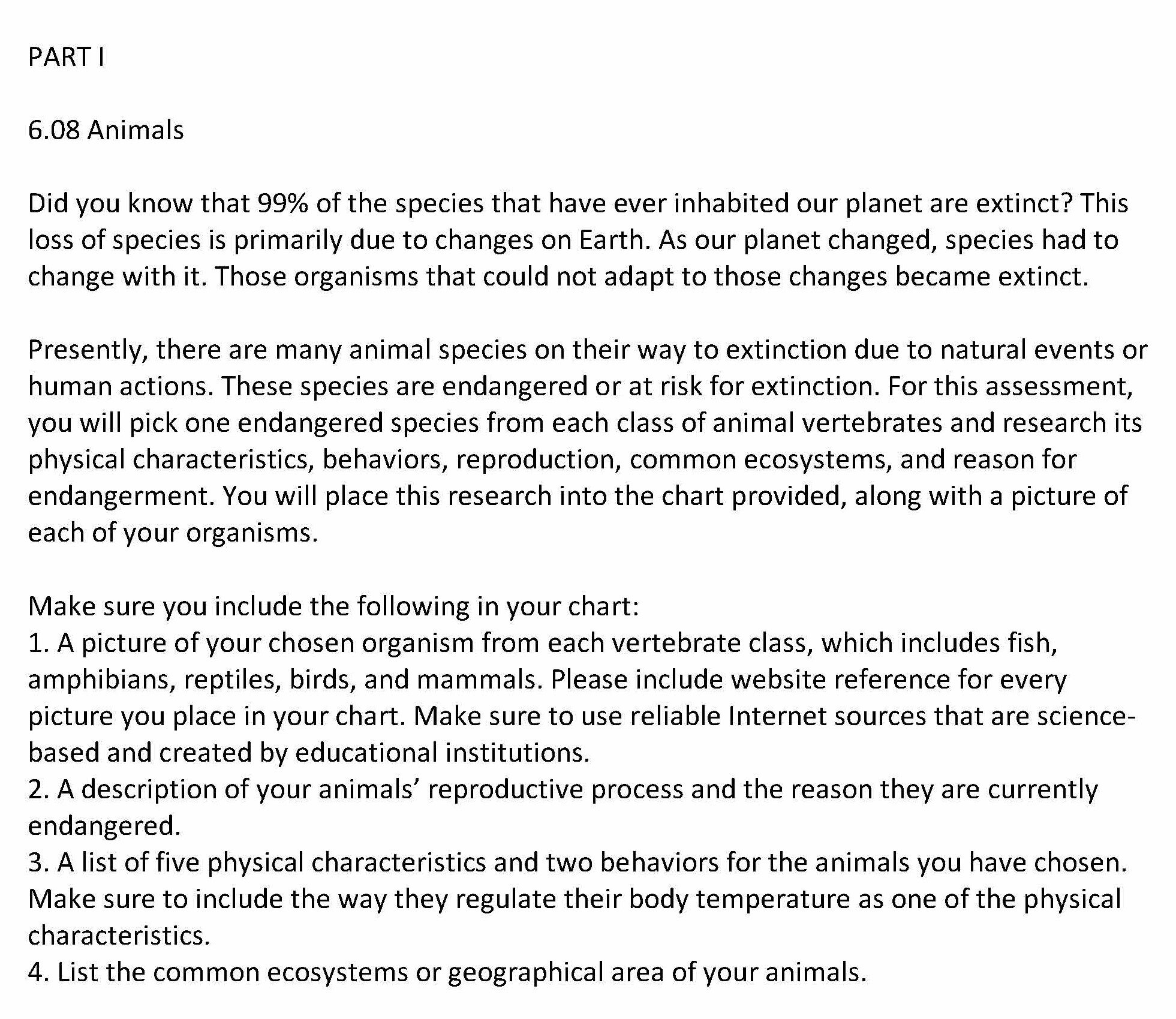 PART I 6.08 Animals Did you know that 99% of the species that hav...