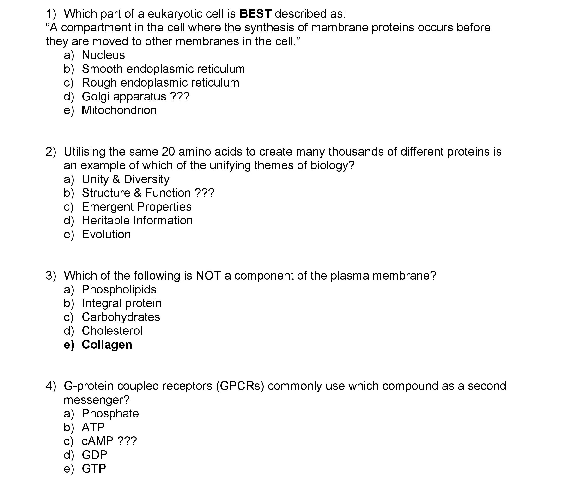 1) Which part of a eukaryotic cell is BEST described as: "A c...