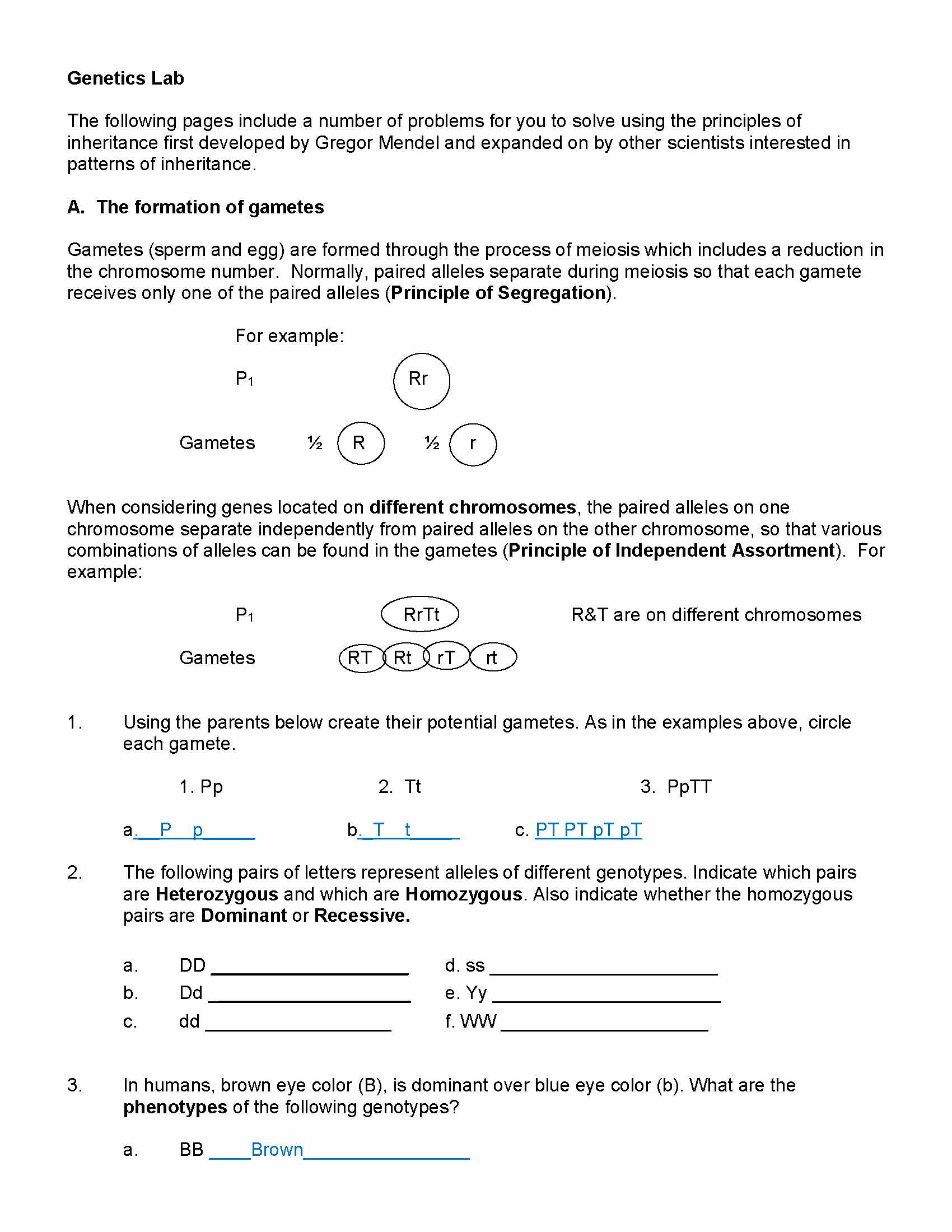 Genetics Lab The following pages include a number of problems for...