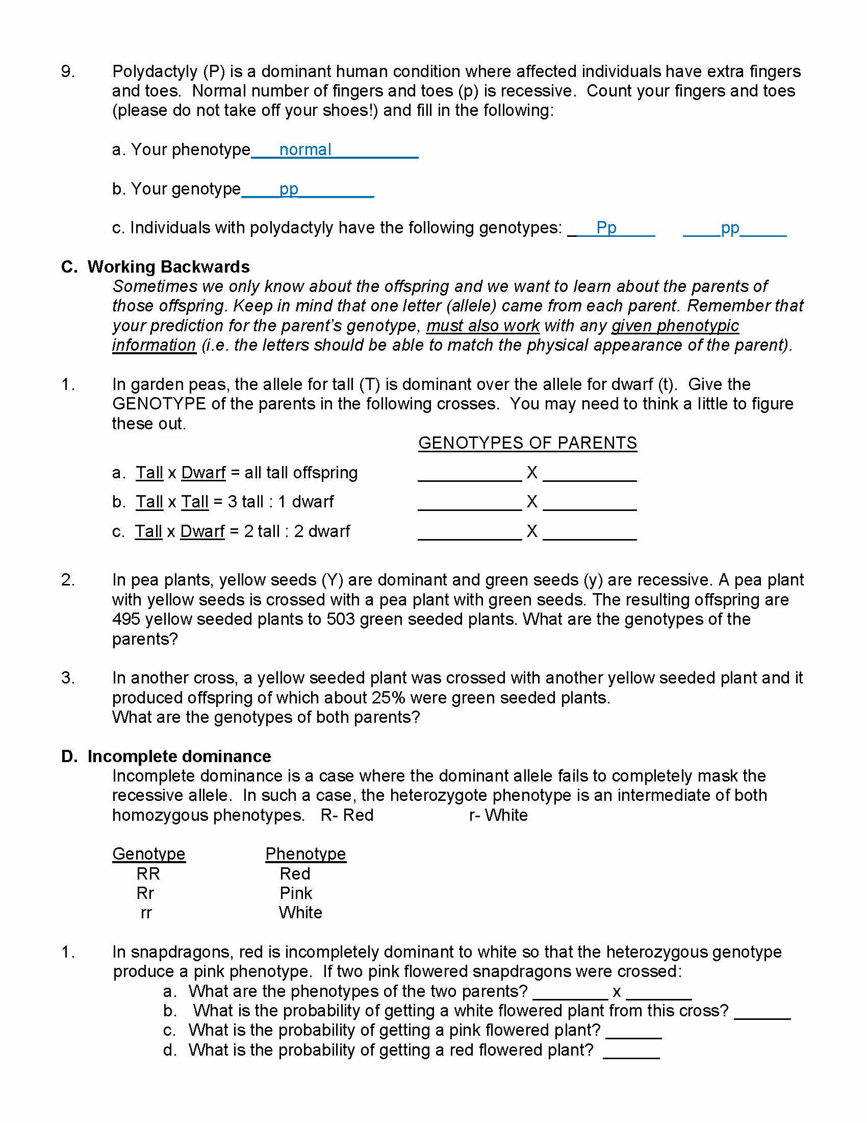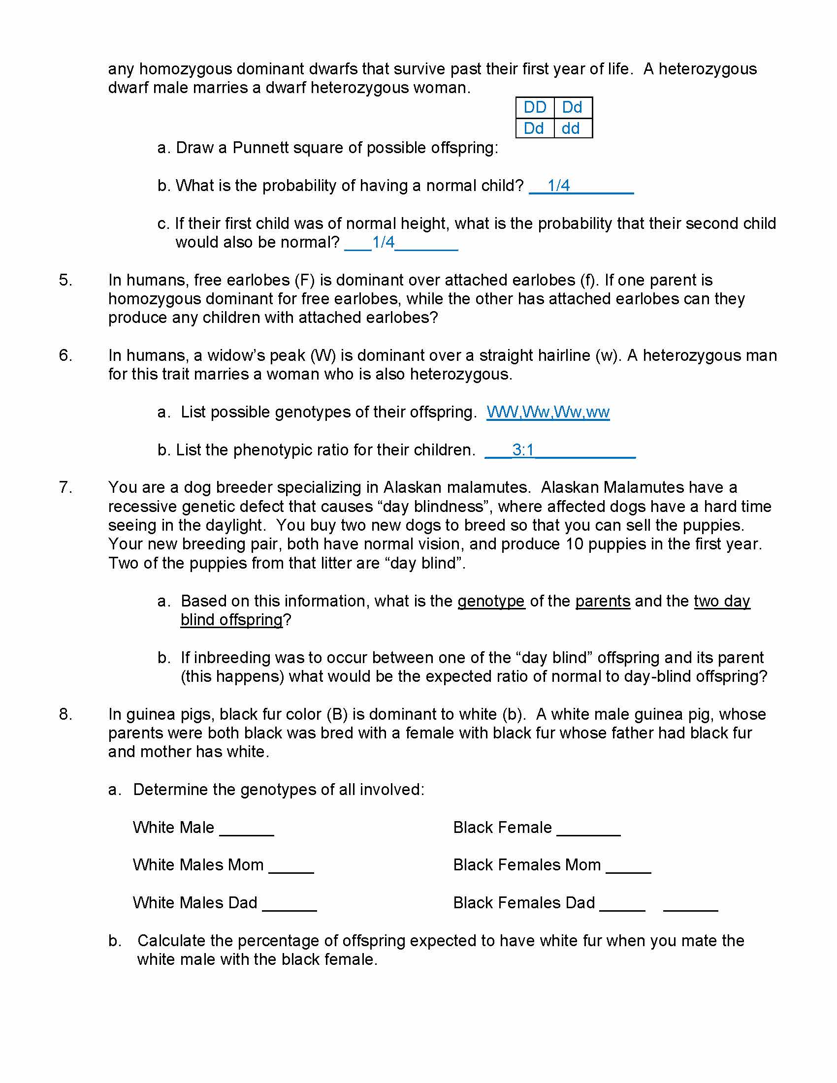 Genetics Lab The following pages include a number of problems for ...
