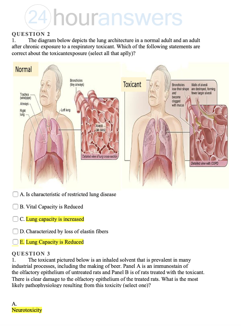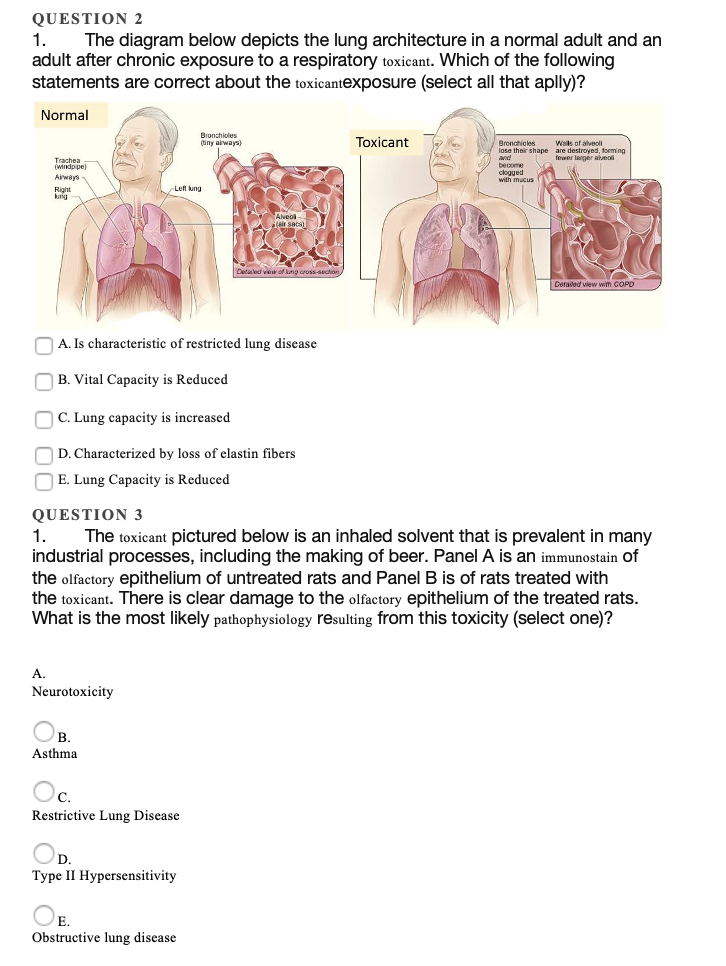 QUESTION 2 1. The diagram below depicts the lung architecture in ...