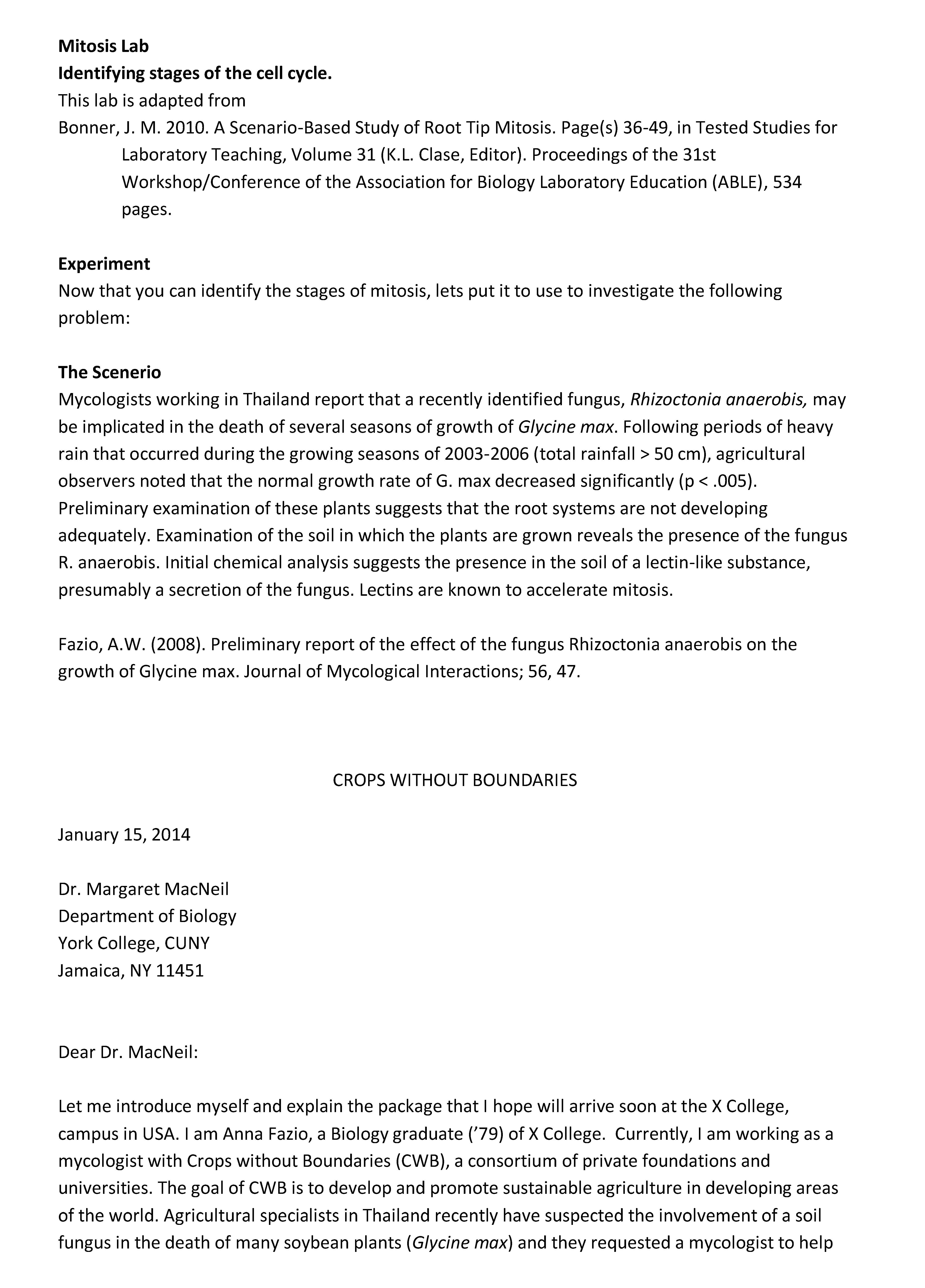 Mitosis Lab Identifying stages of the cell cycle. This lab is ada...