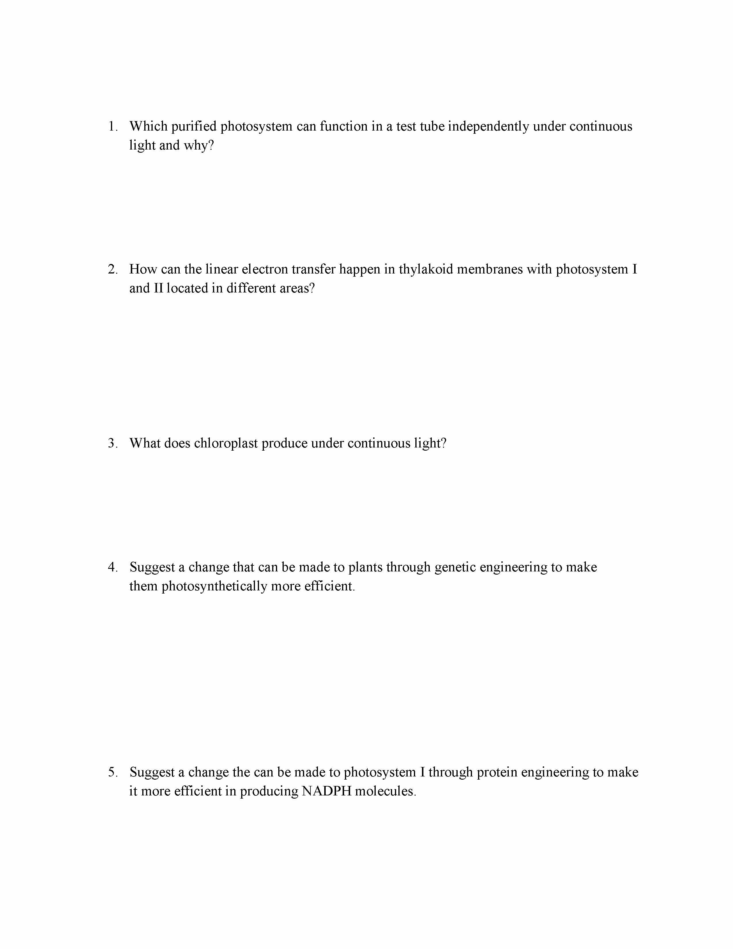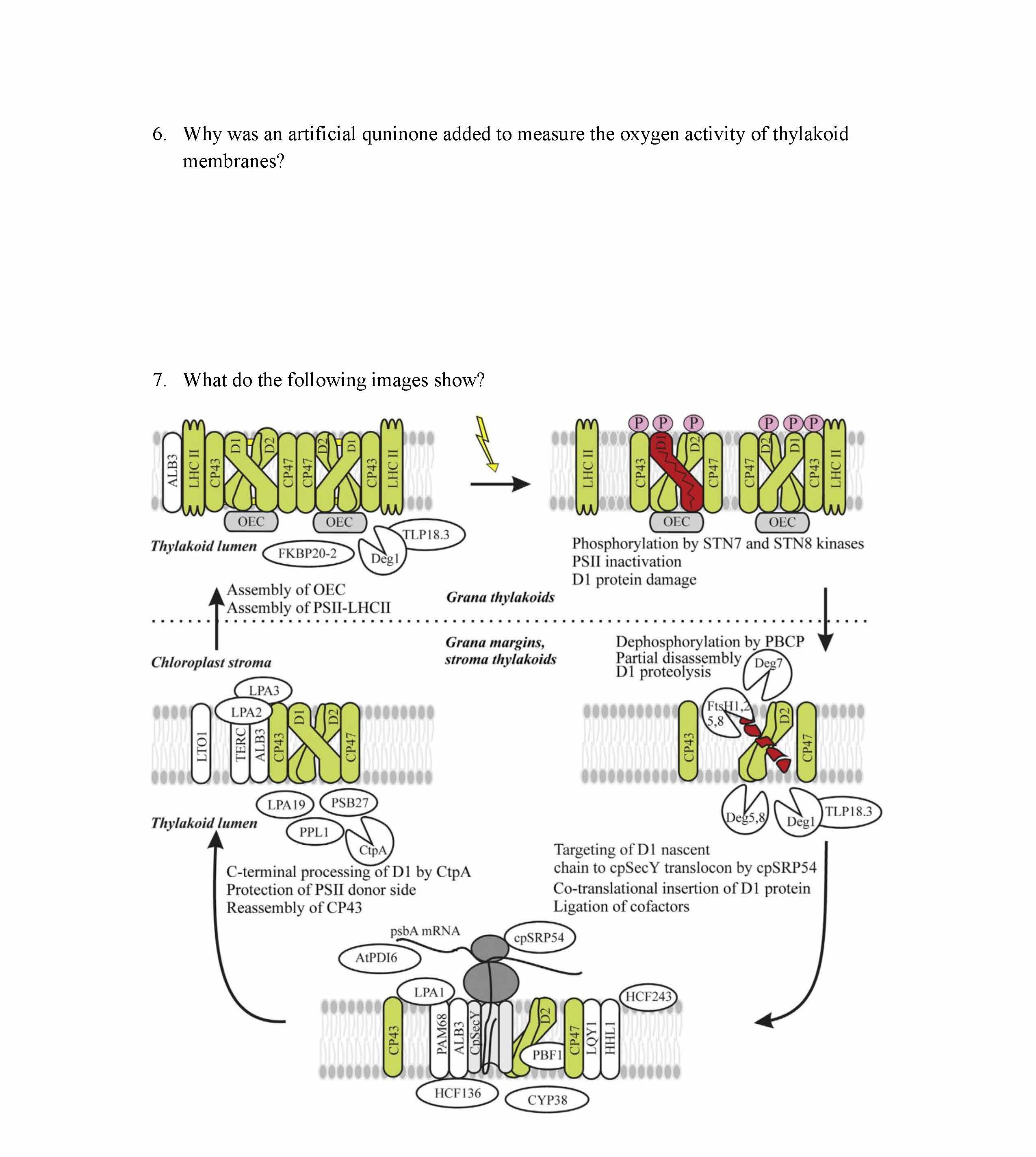 1. Which purified photosystem can function ina test tube independen...