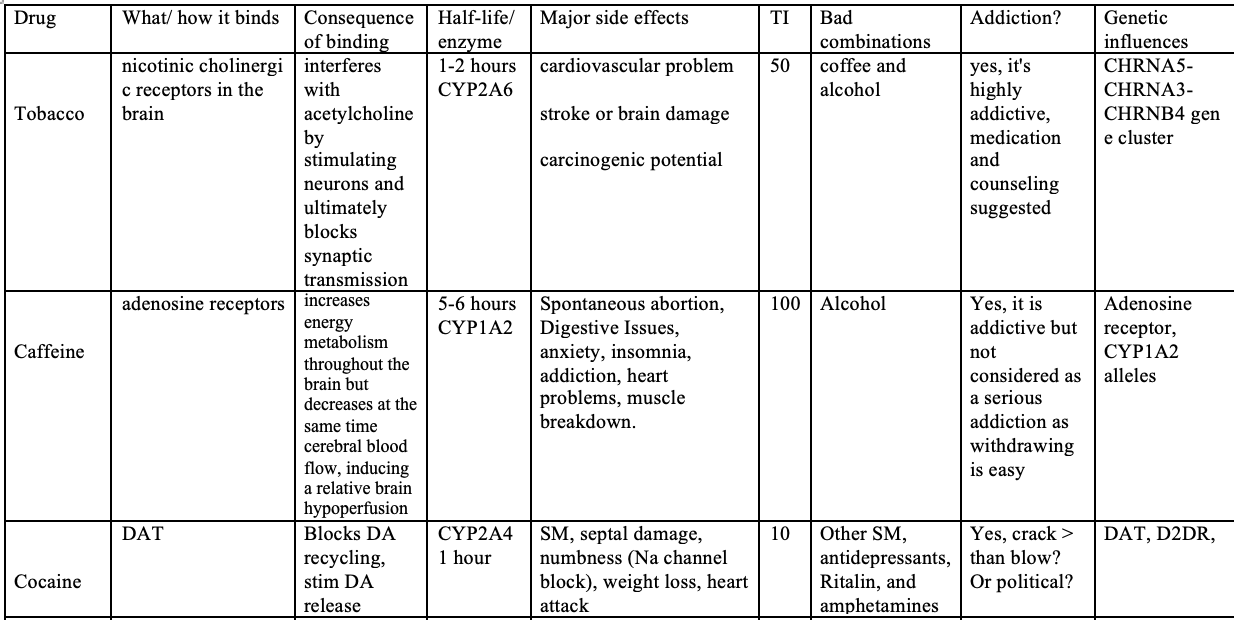Drug What/ how Consequence of Half-life/ Major side effects TI...