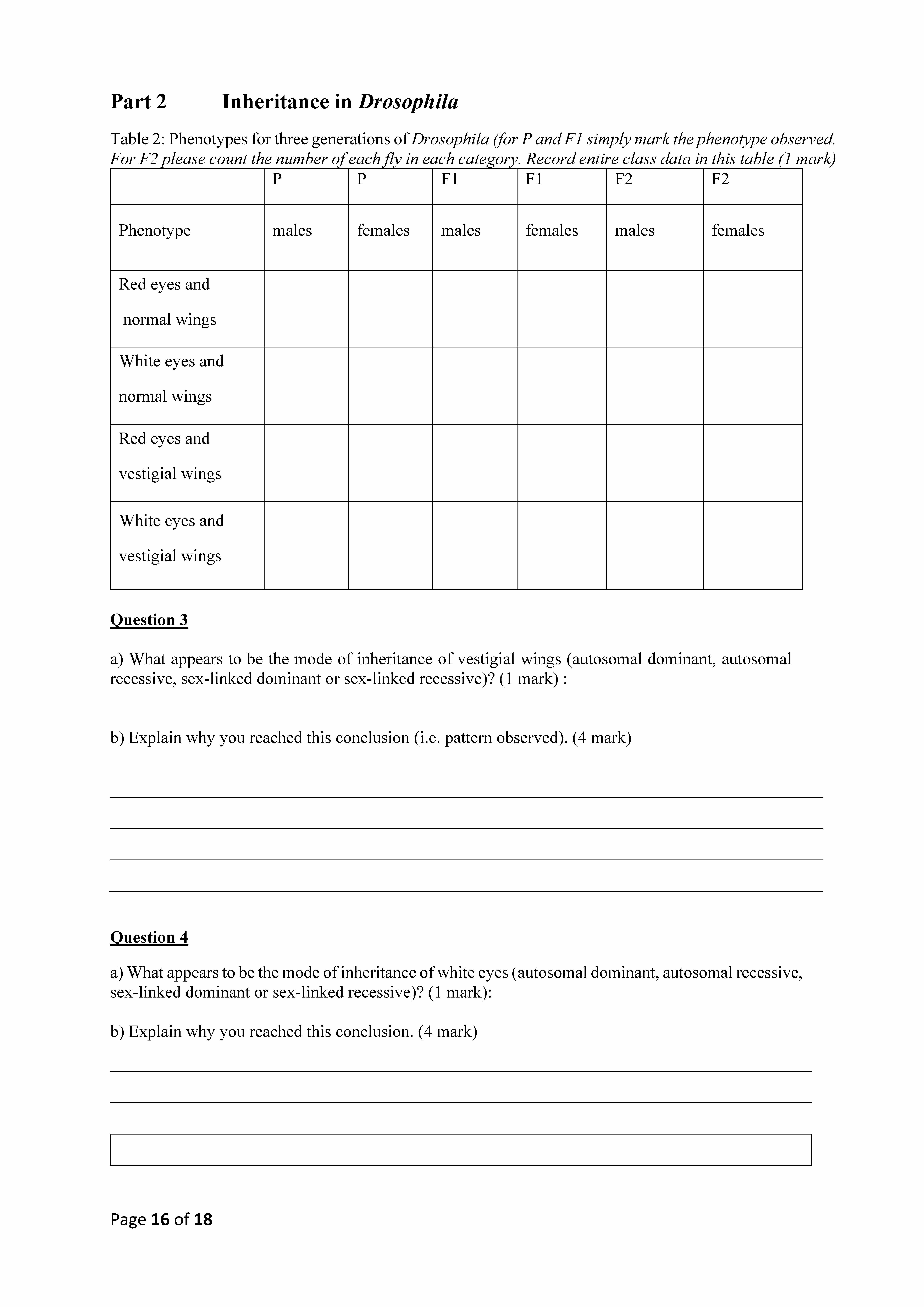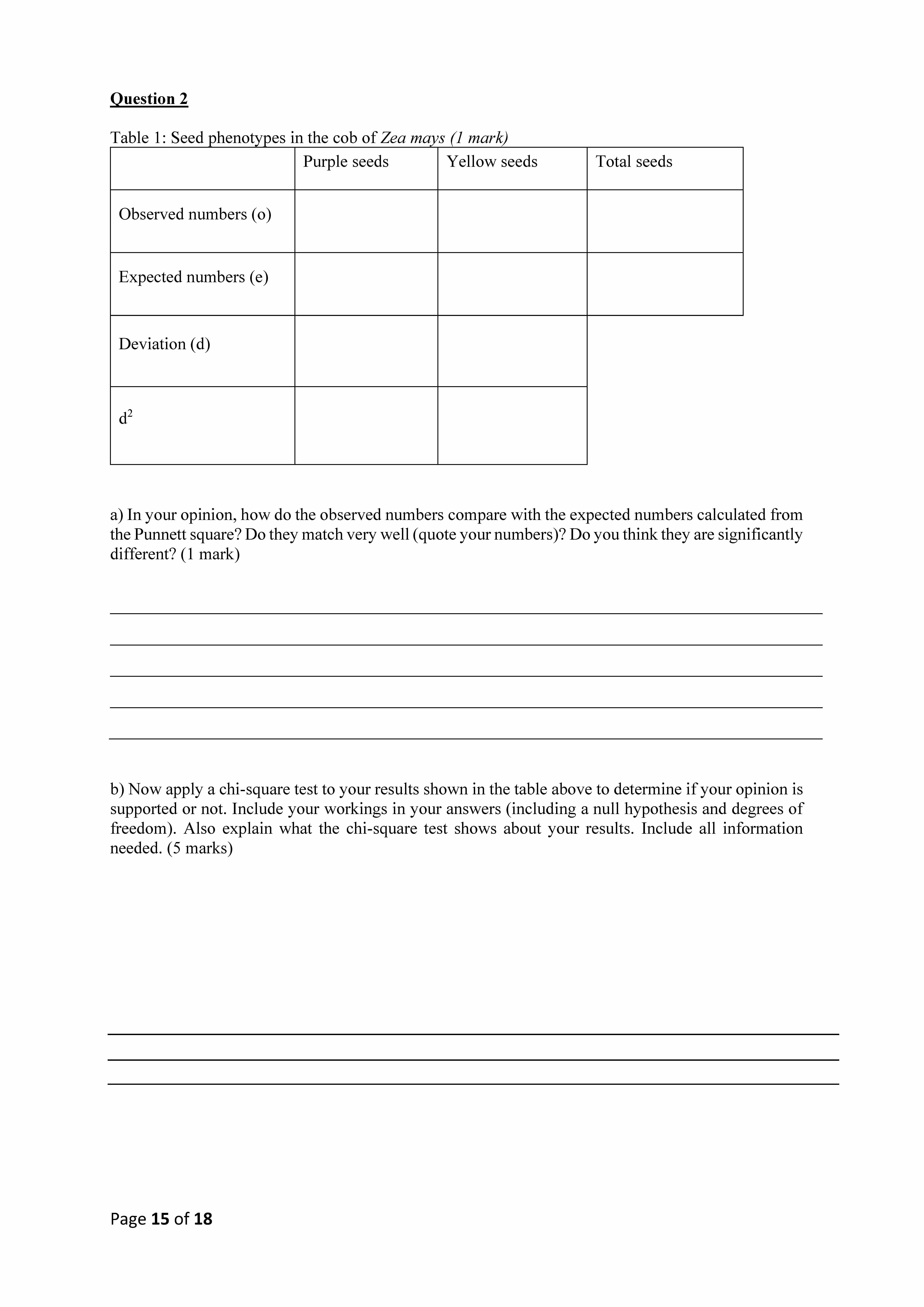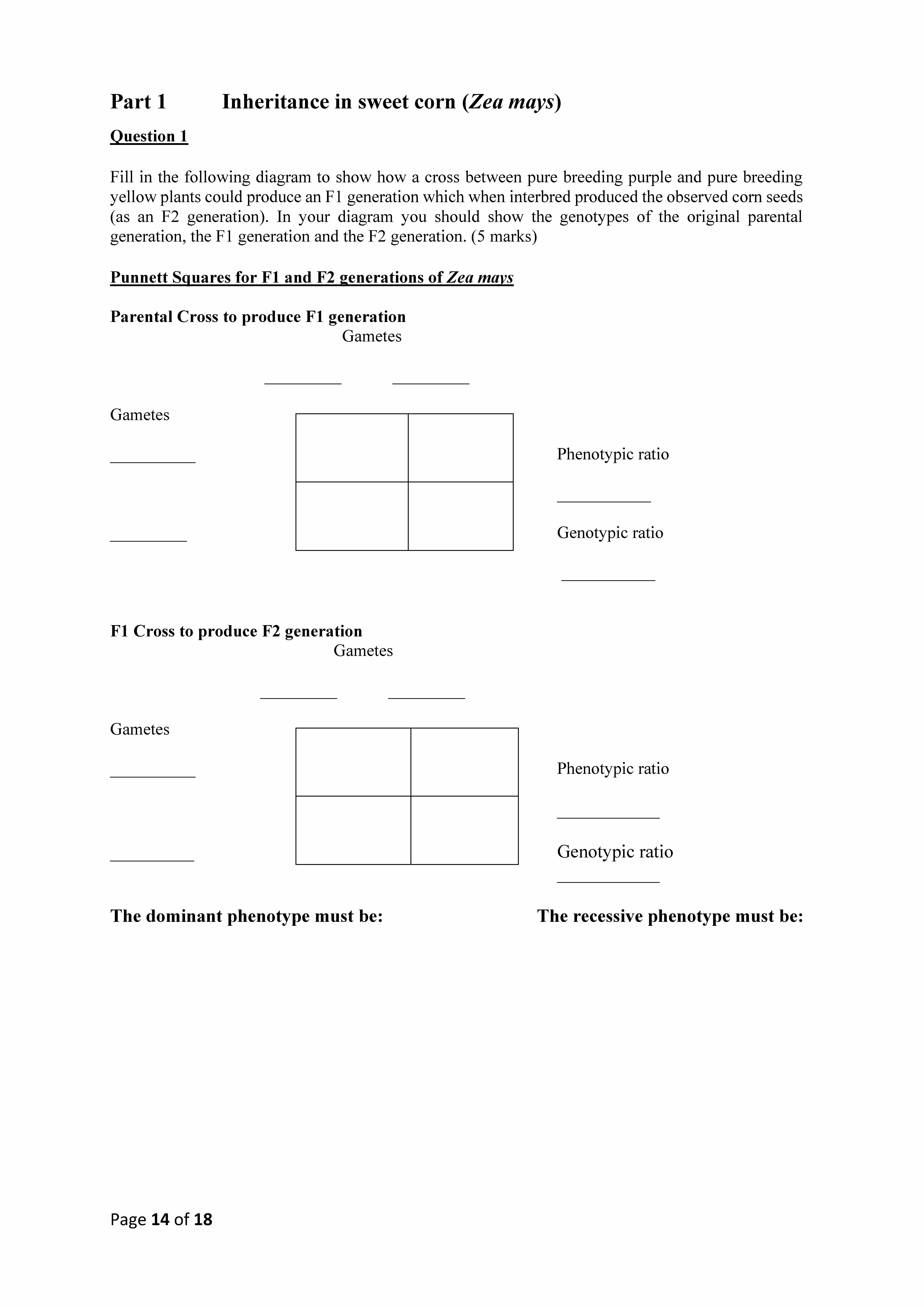 Part 1 Inheritance in sweet corn (Zea mays) Question 1 Fill in th...