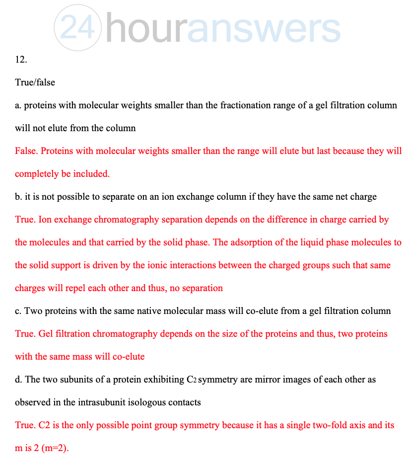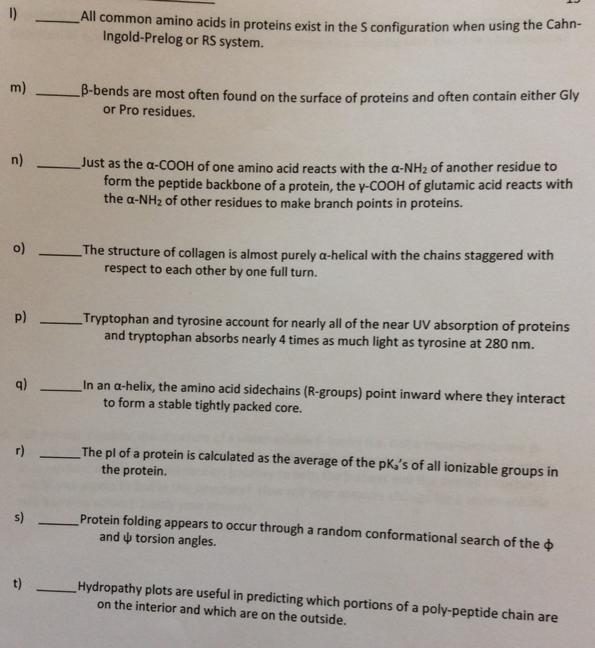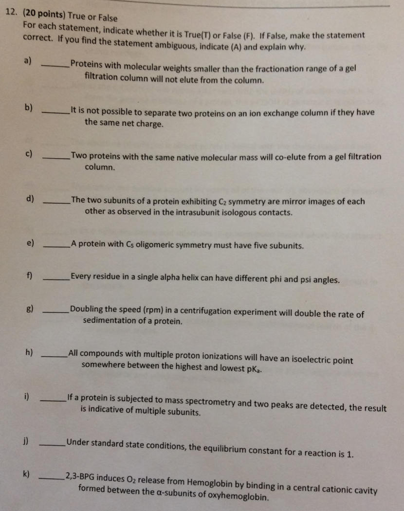 12. (20 points) True or False For each statement, indicate whether...