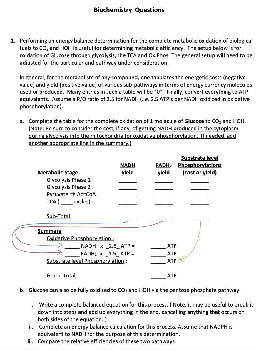 Biochemistry Questions 1. Performing an energy balance determinati...