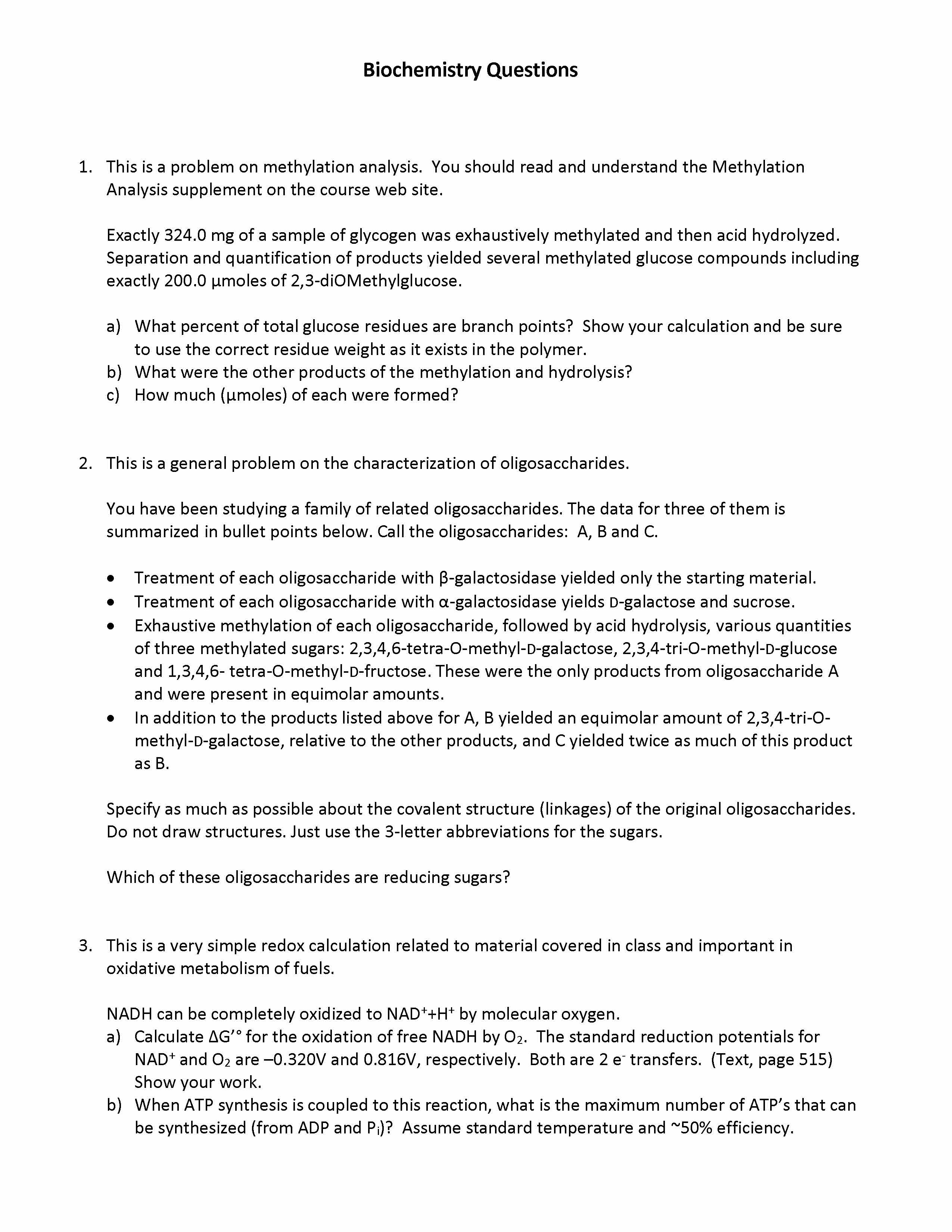 Biochemistry Questions 1. This is a problem on methylation analysi...