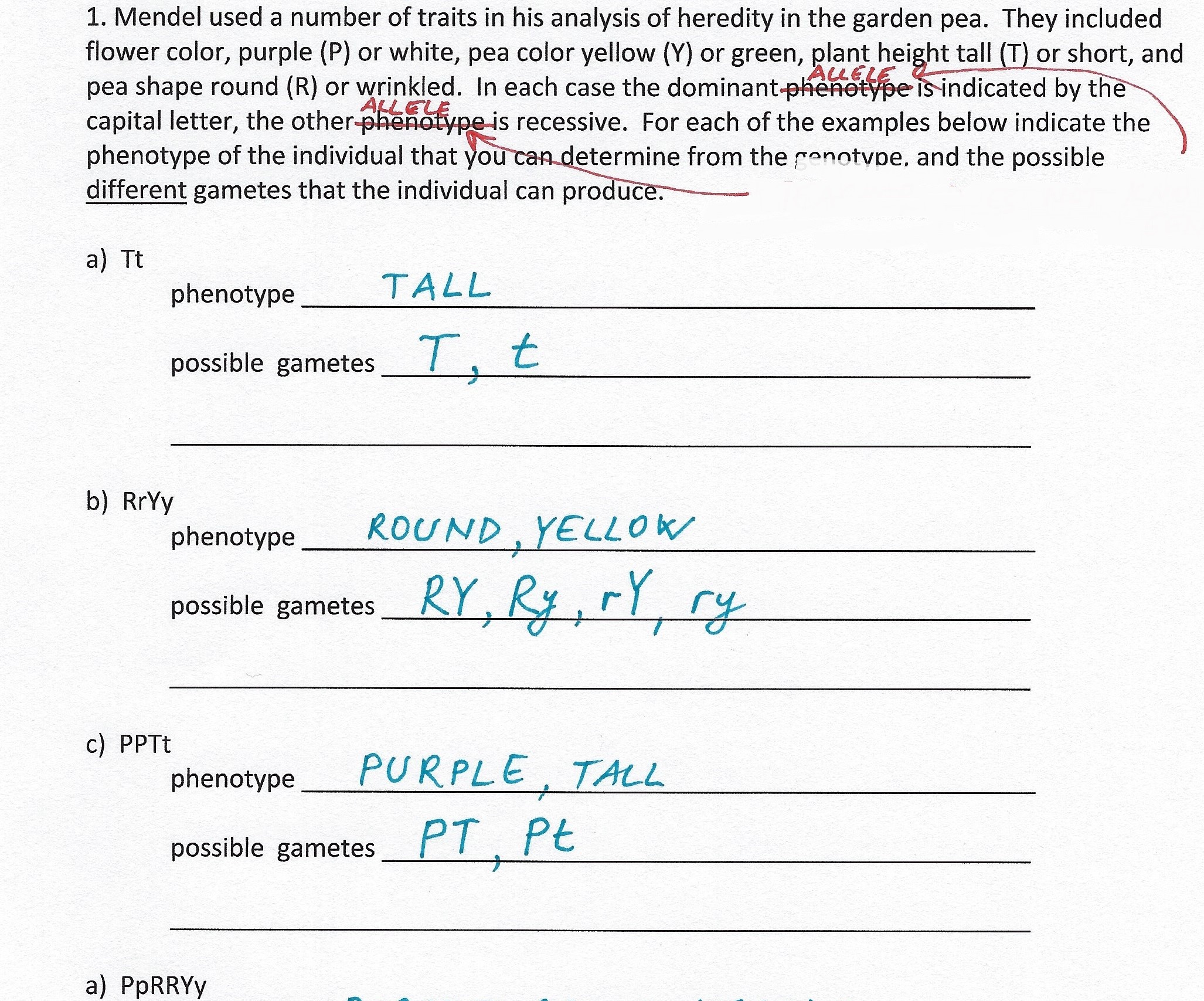1. Mendel used a number of traits in his analysis of heredity in th...