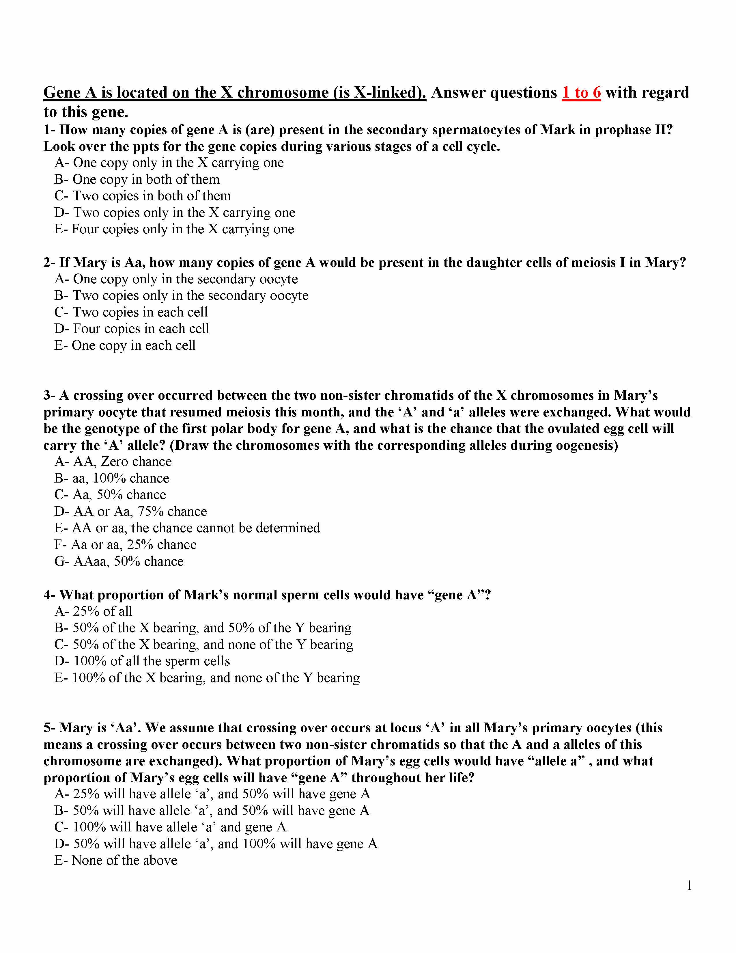 Gene A is located on the X chromosome (is X-linked). Answer questio...