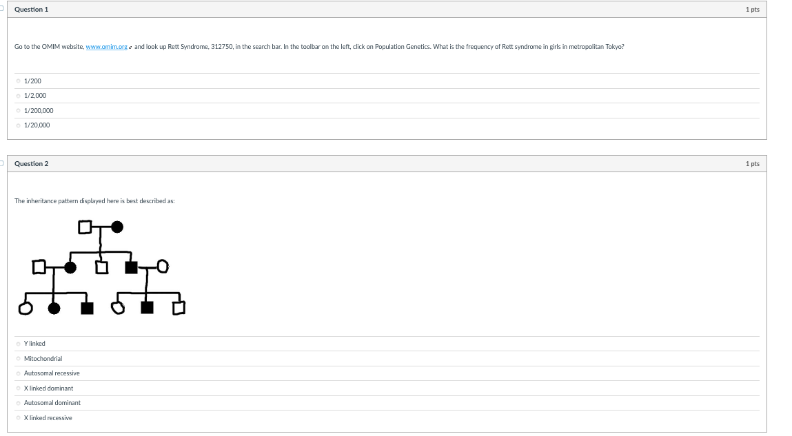 Question 1 1pts Go to the OMIM website www.omim.org e and look up...