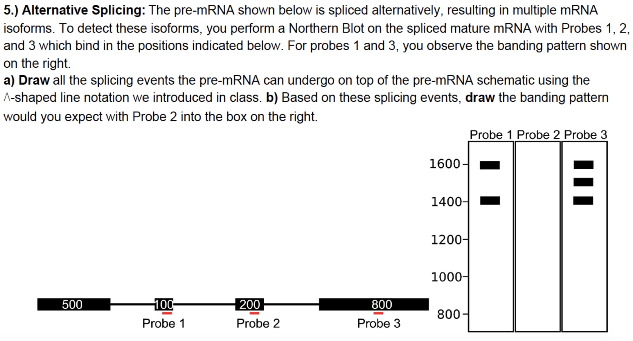 5.) Alternative Splicing: The pre-mRNA shown below is spliced alter...