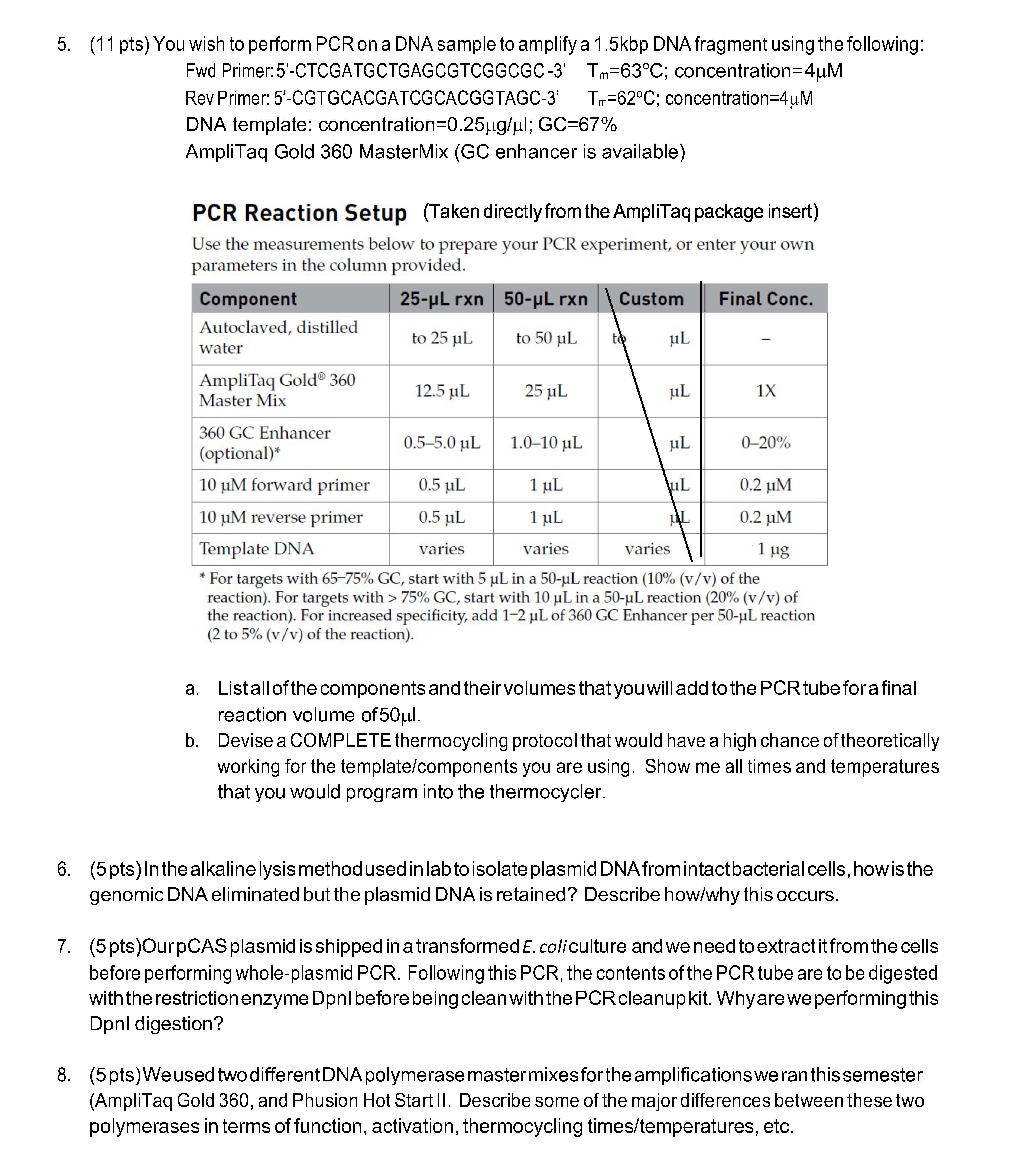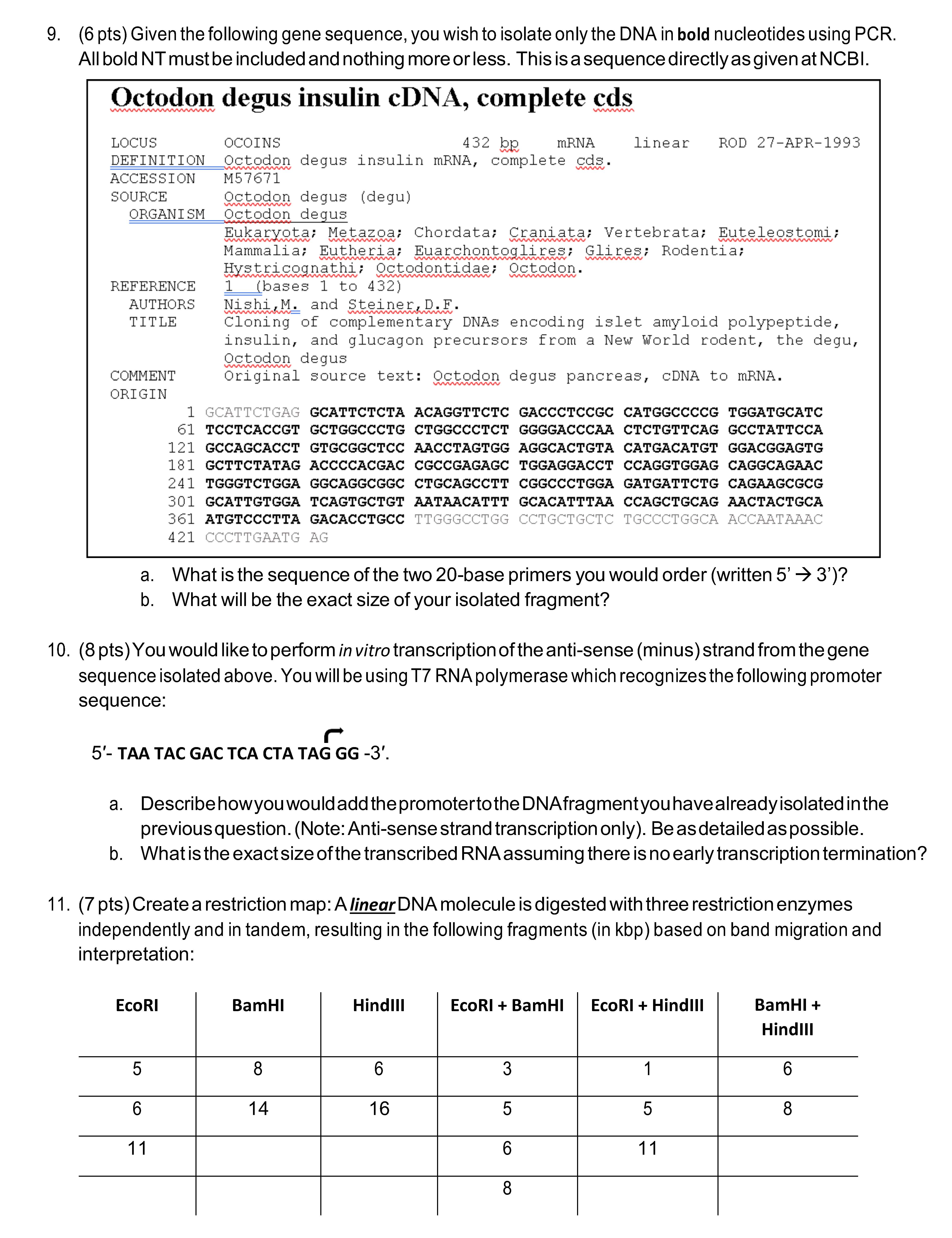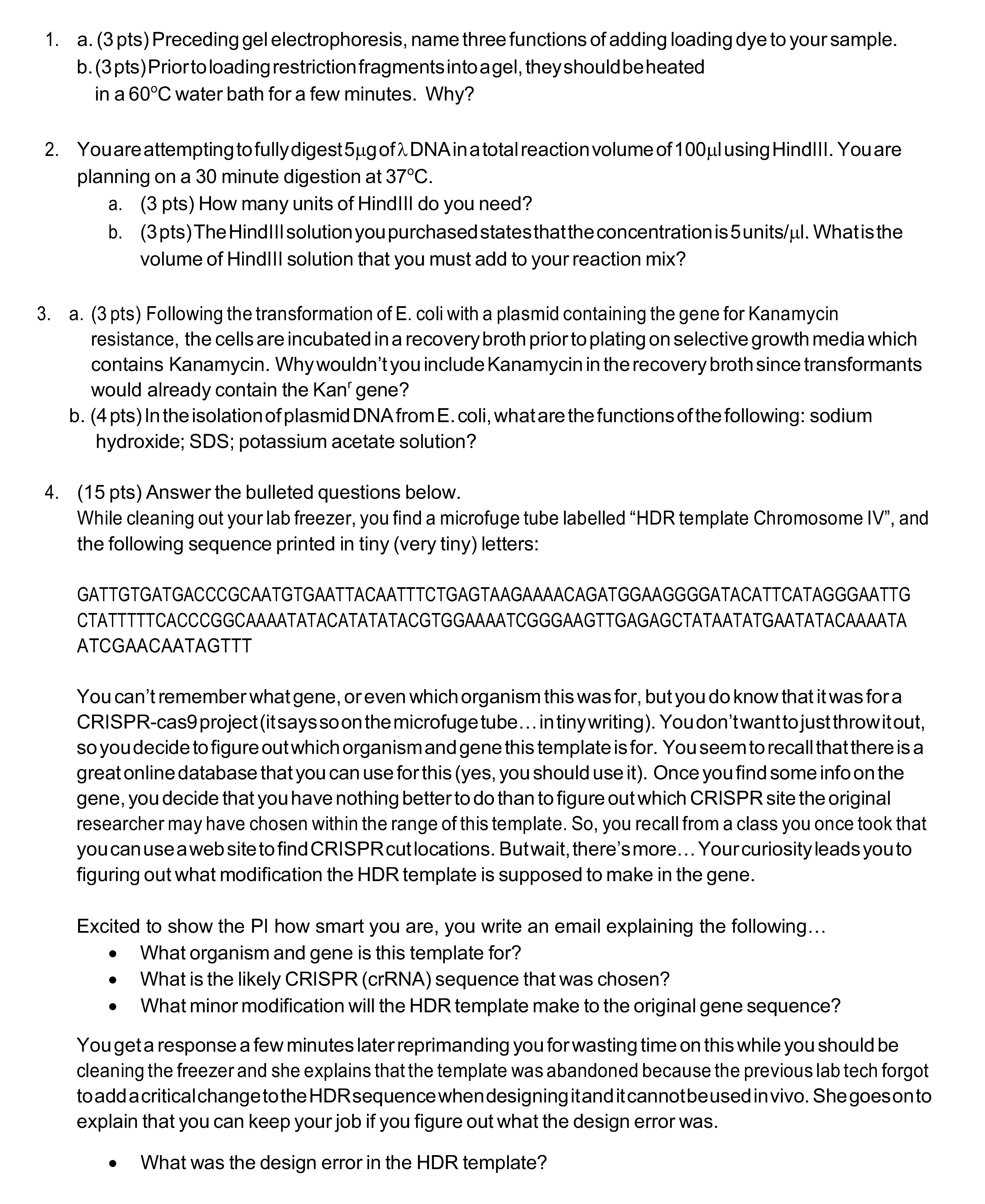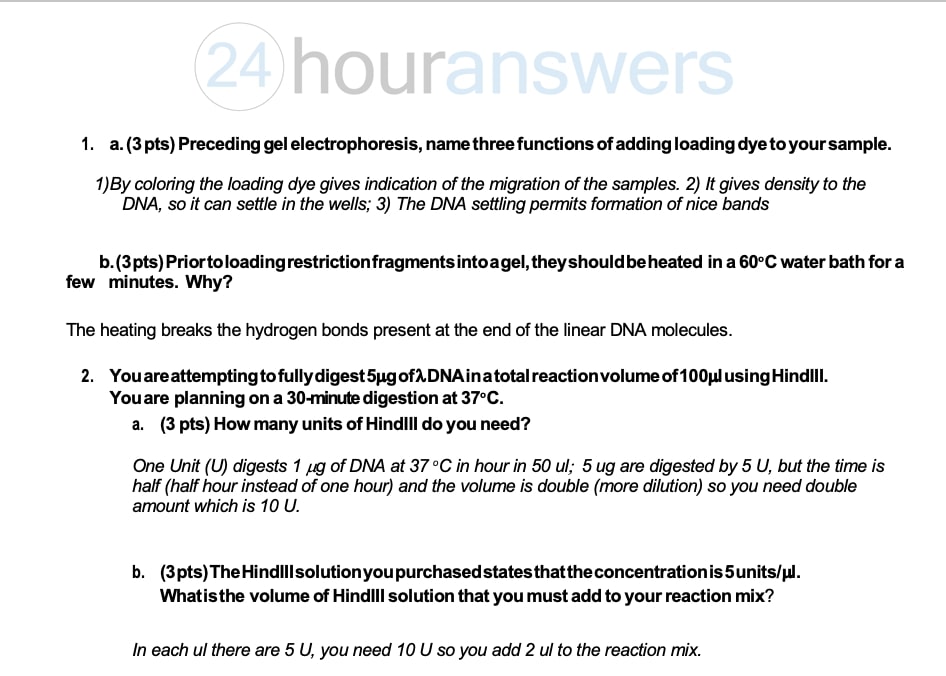 a. (3 pts) Preceding gel electrophoresis, name three functions of a...