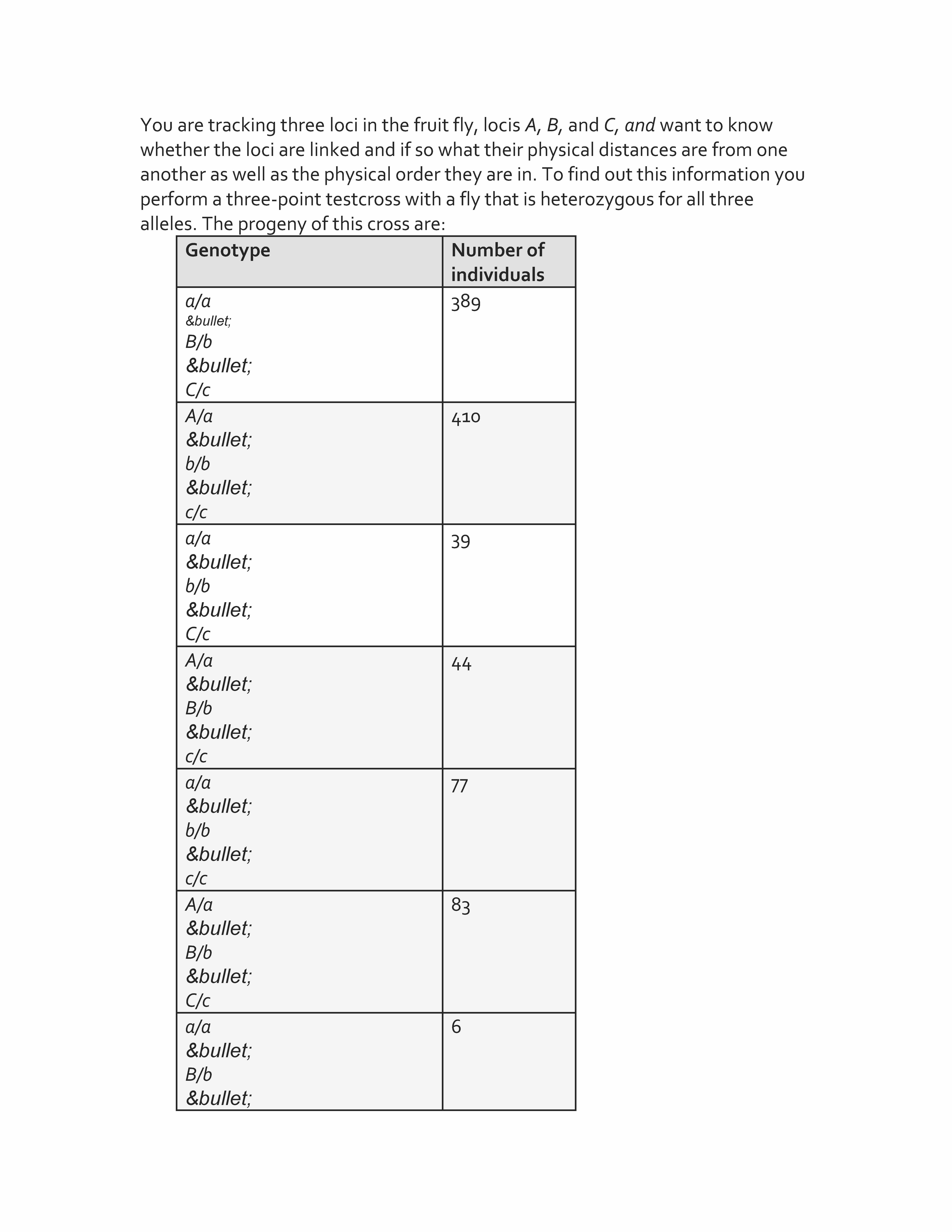You are tracking three loci in the fruit fly, loci in A, B, and C, ...