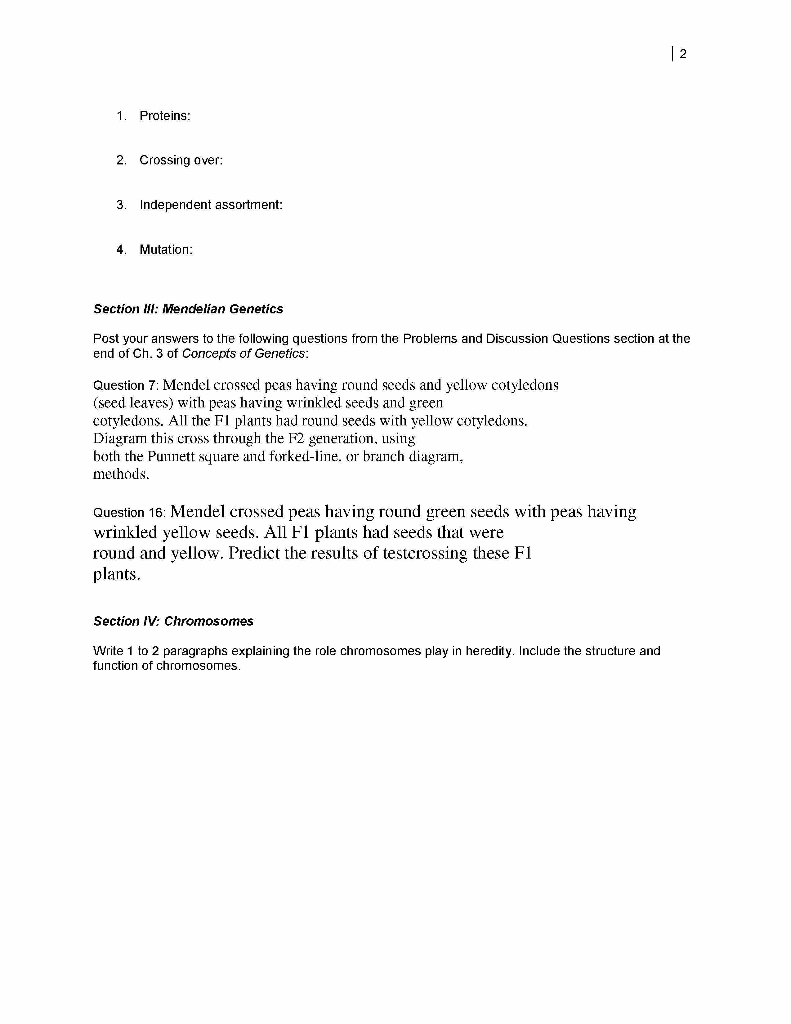 Cell Division, Chromosomes, and Inheritance Complete all four sect...