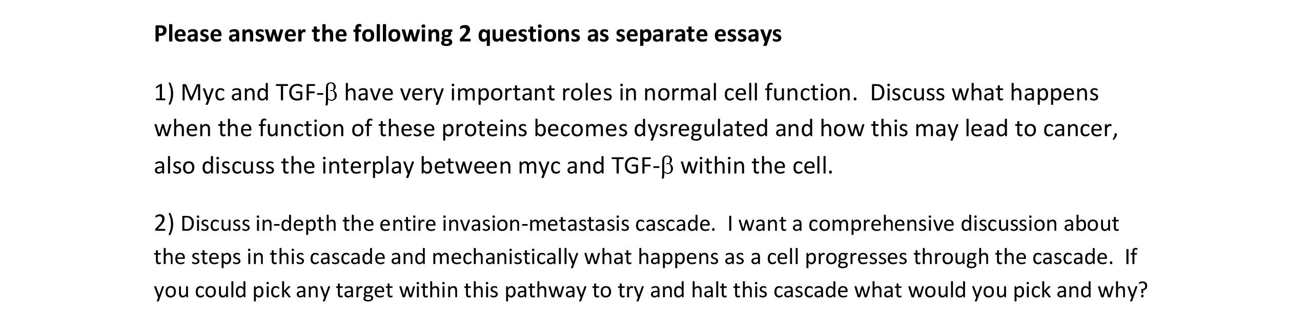 Please answer the following 2 questions as separate essays 1) Myc ...