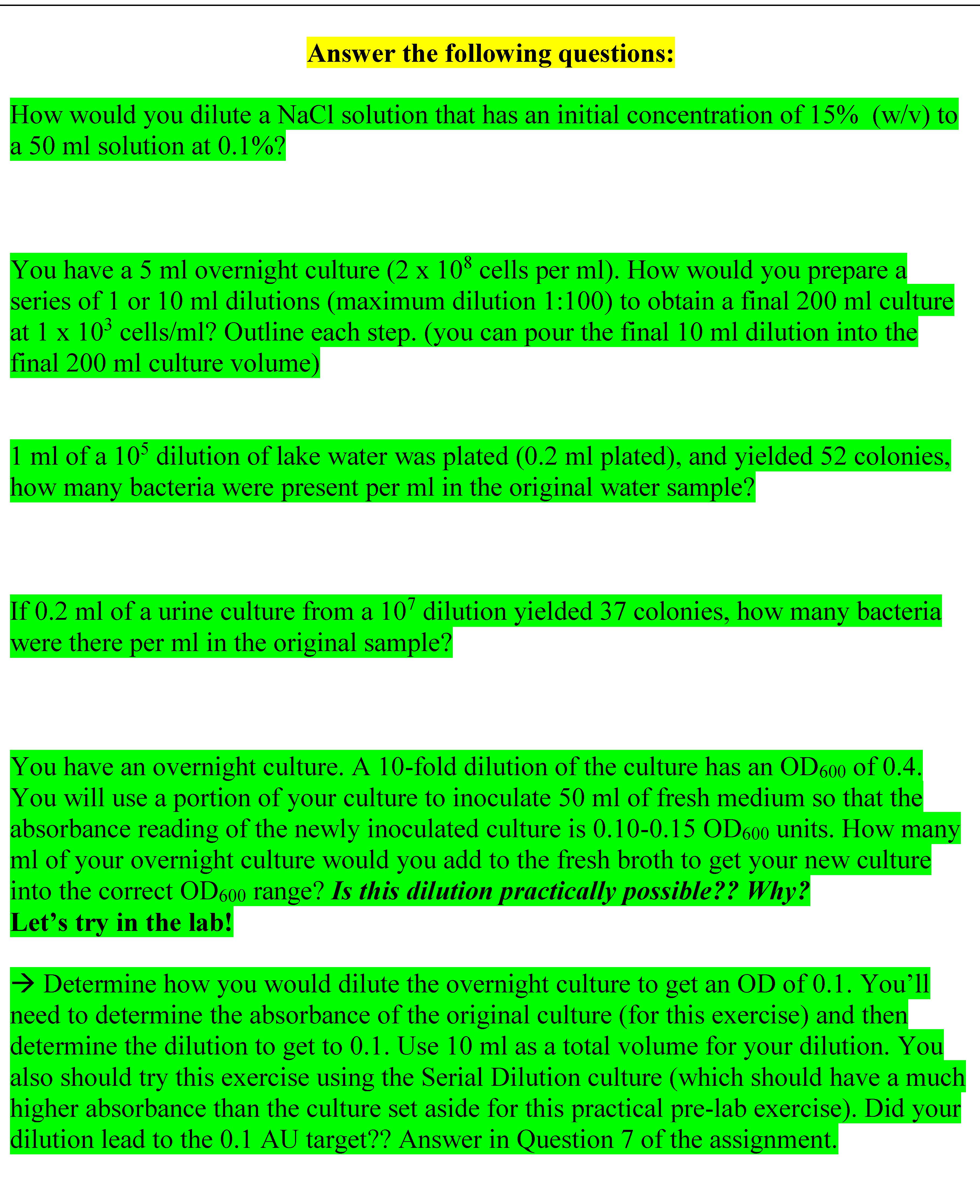 Answer the following questions: How would you dilute a NaCl soluti...