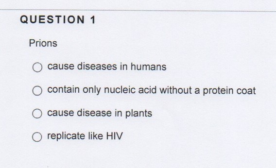 QUESTION 1 Prions cause diseases in humans contain only nucleic ...