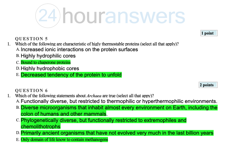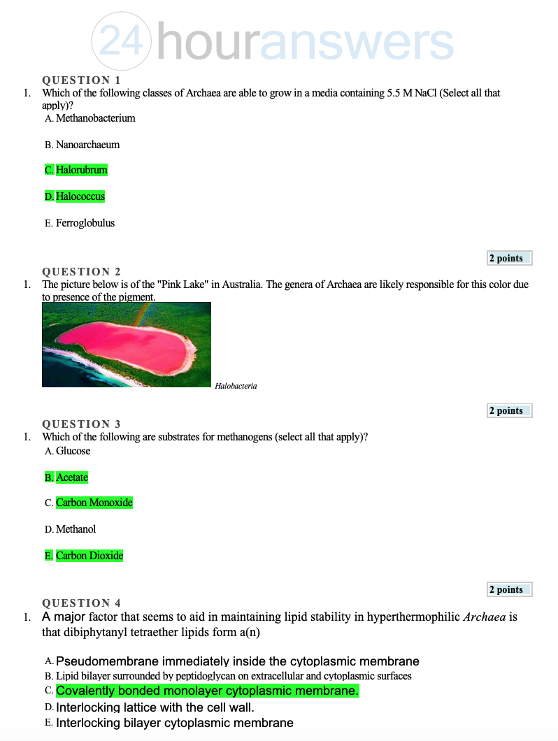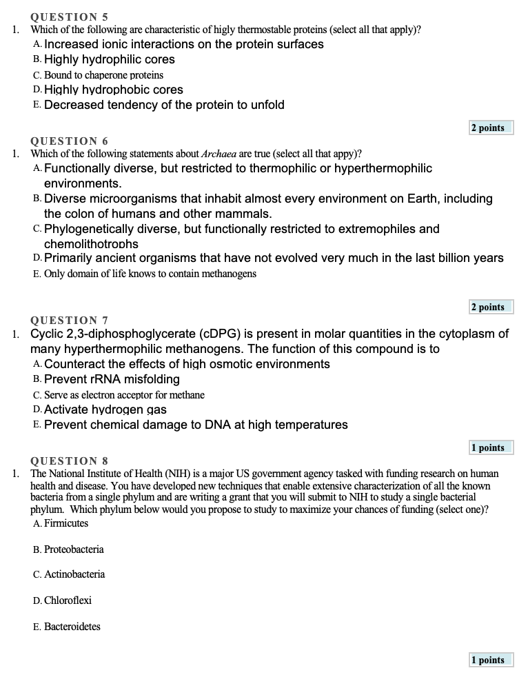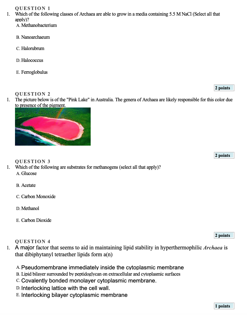 QUESTION 1 1. Which of the following classes of Archaea are able ...