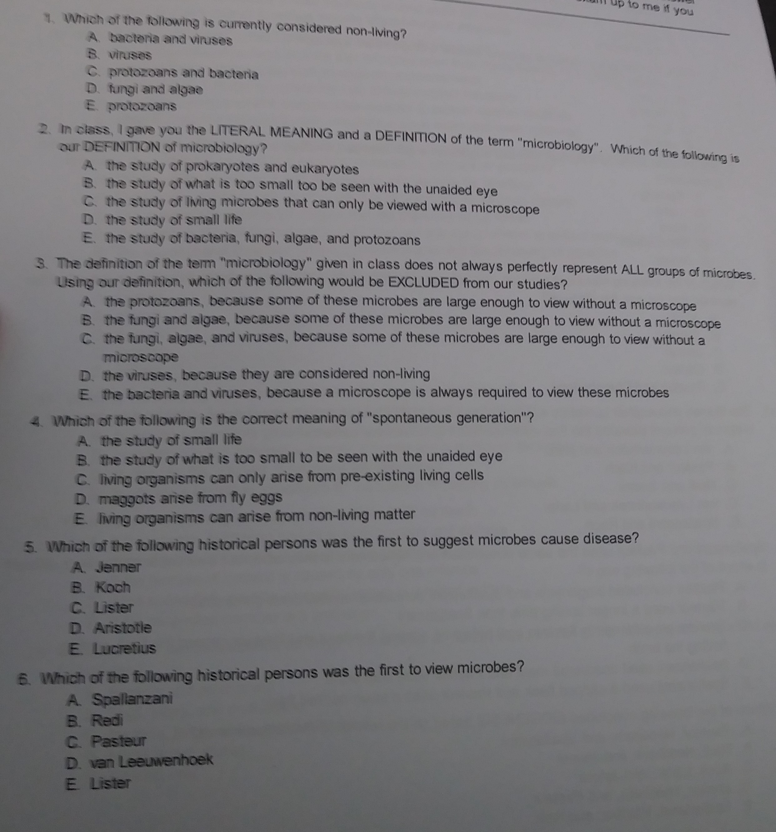 to me 1. Which of the following is currently considered non-livin...