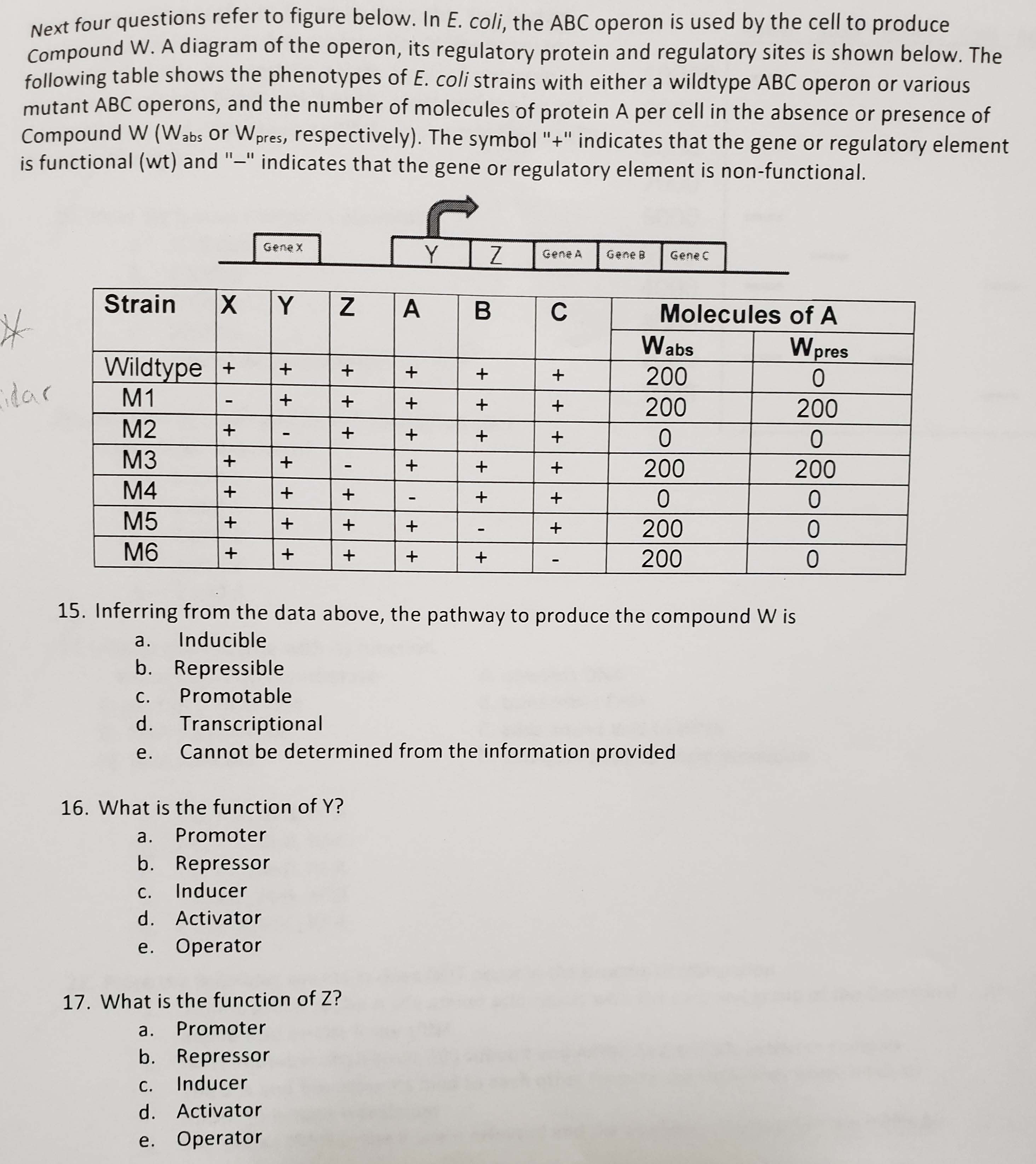 Next four questions refer to figure below. In E. coli, the ABC oper...