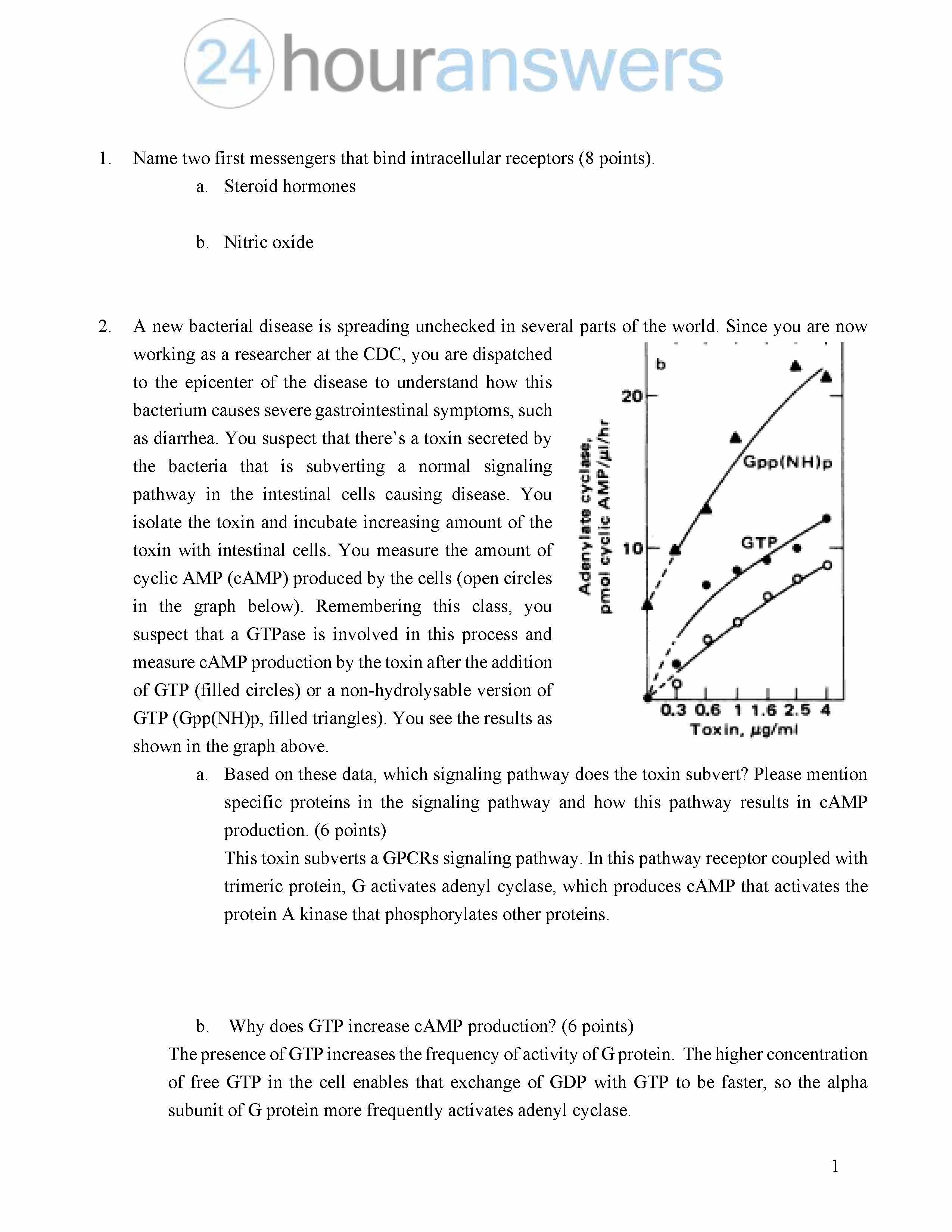 1. Name two first messengers that bind intracellular receptors (8 p...