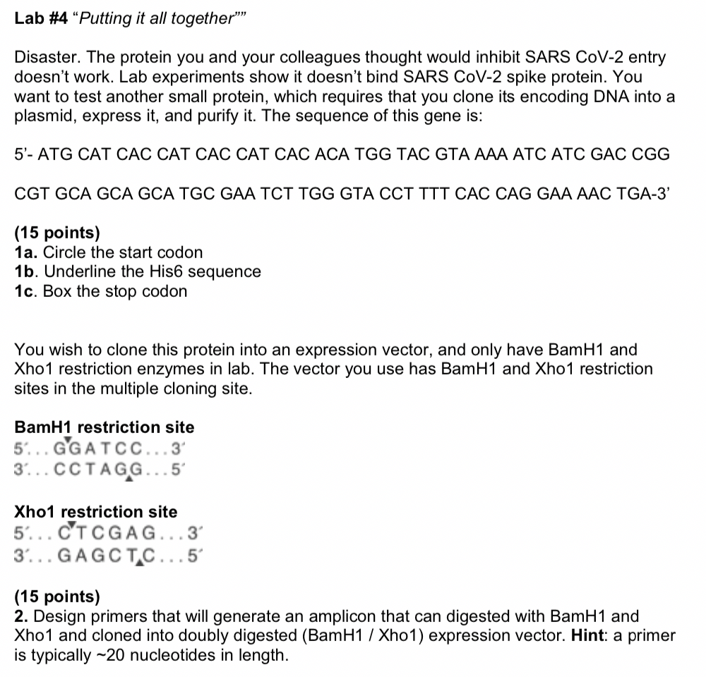 Lab #4 "Putting it all together" Disaster. The protein y...