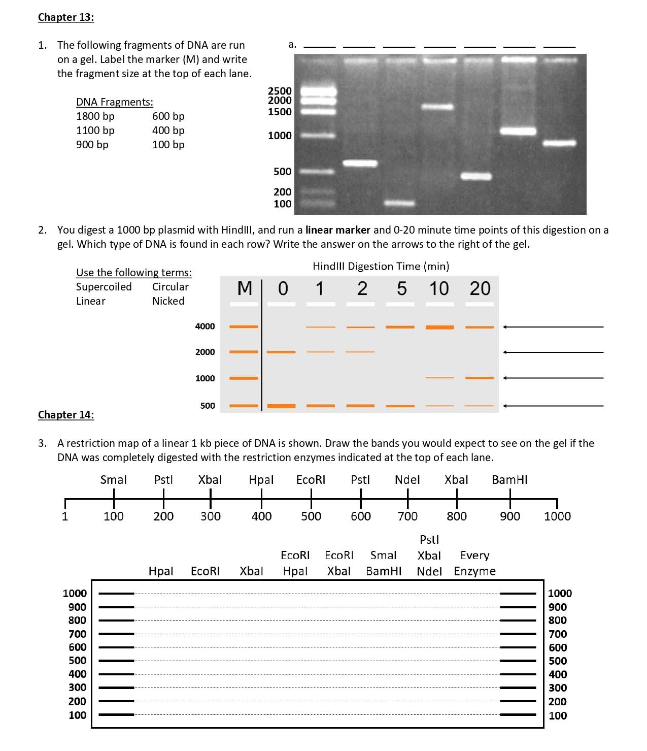 Chapter 13: 1. The following fragments of DNA are run a. on a ge...