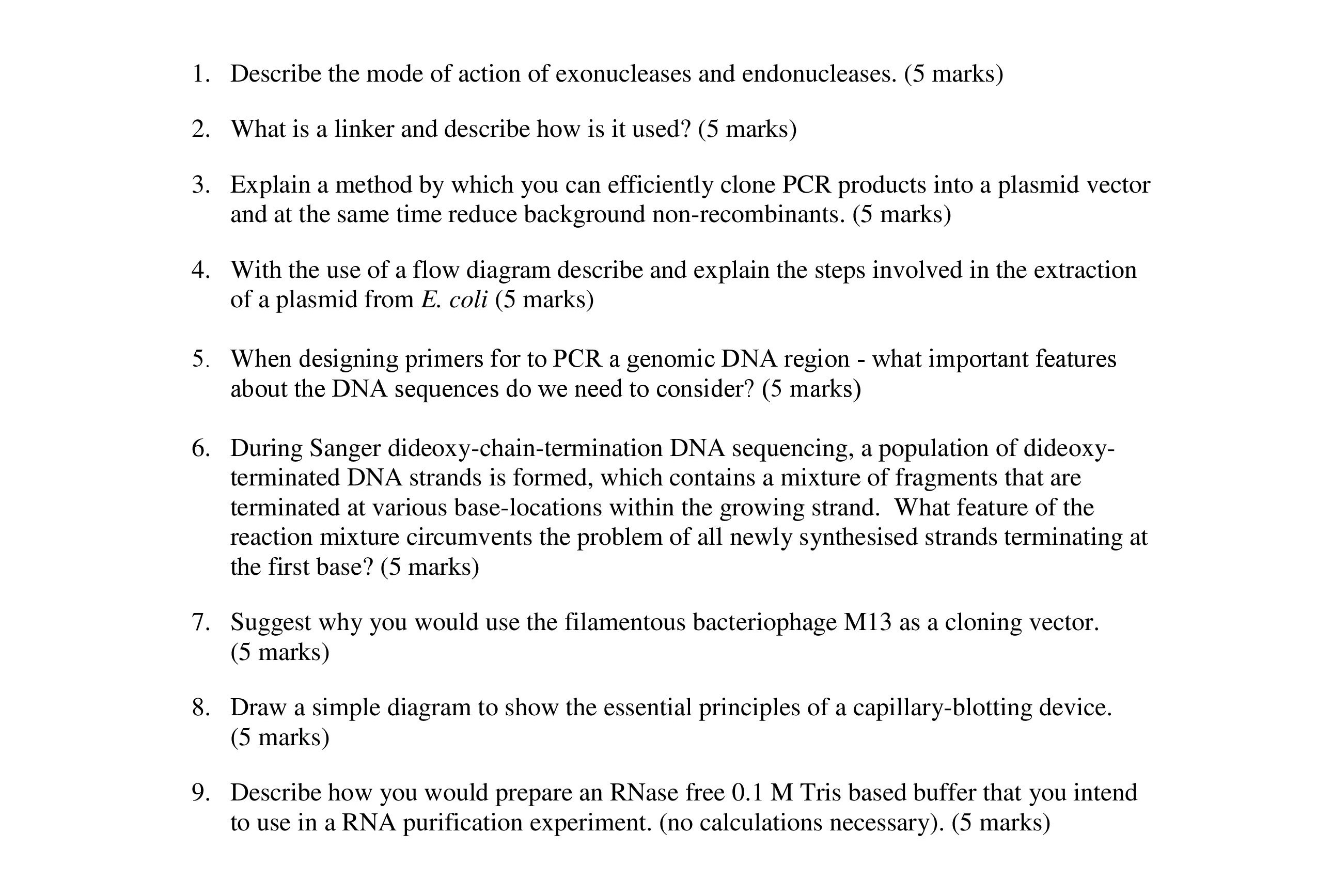 1. Describe the mode of action of exonucleases and endonucleases. (...