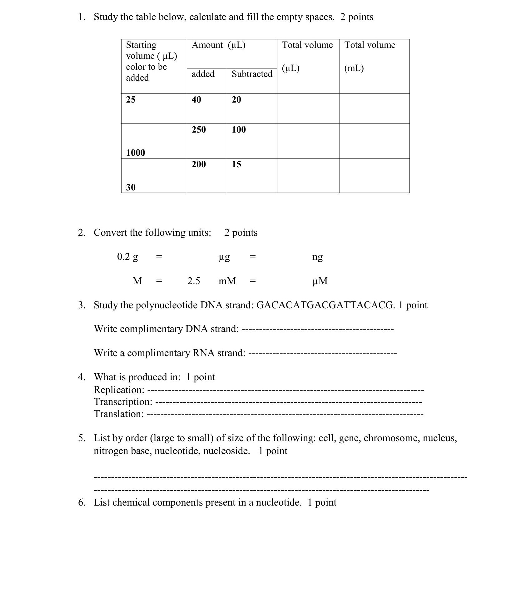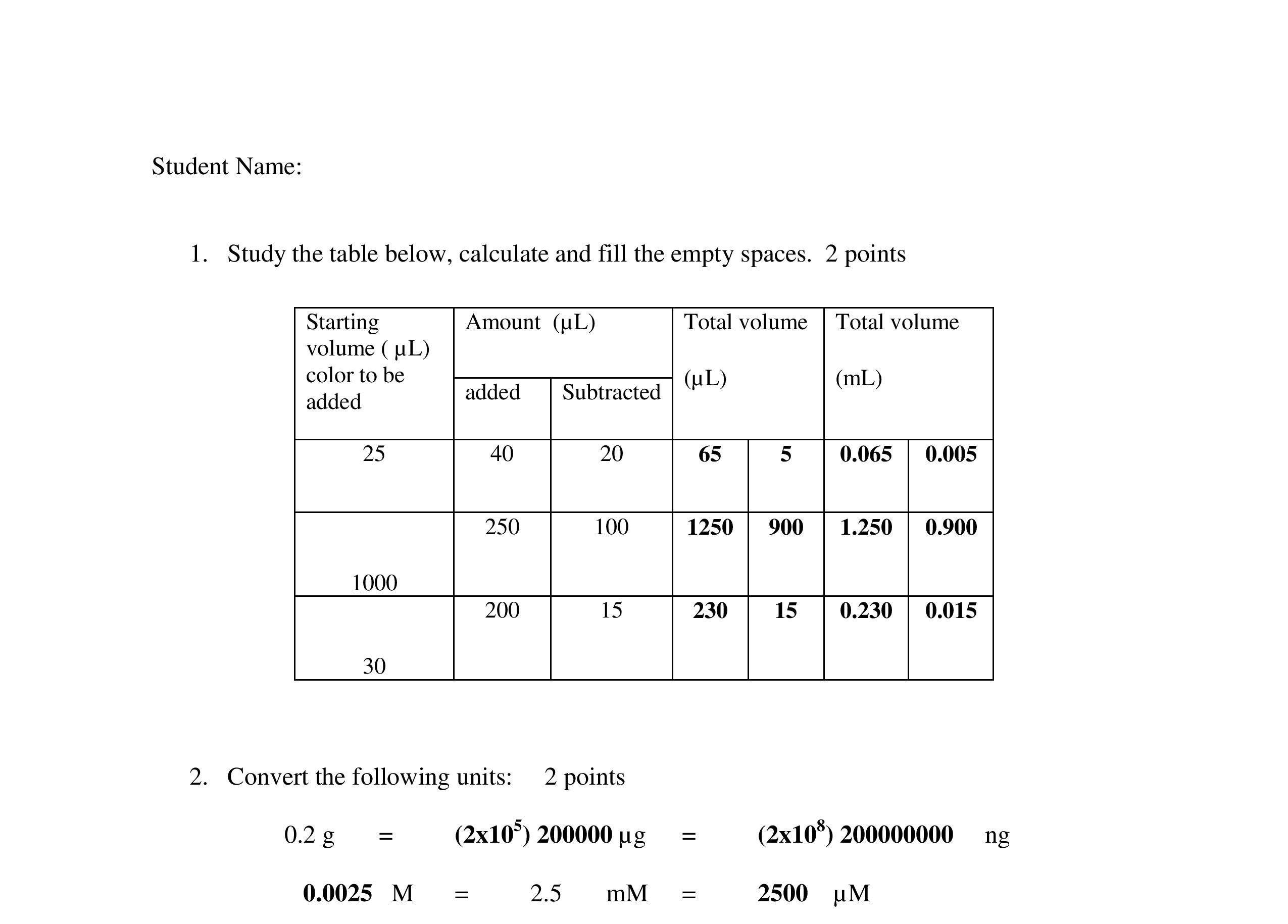 1. Study the table below, calculate and fill the empty spaces. 2 po...