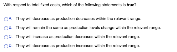With respect to total fixed costs, which of the following statement...
