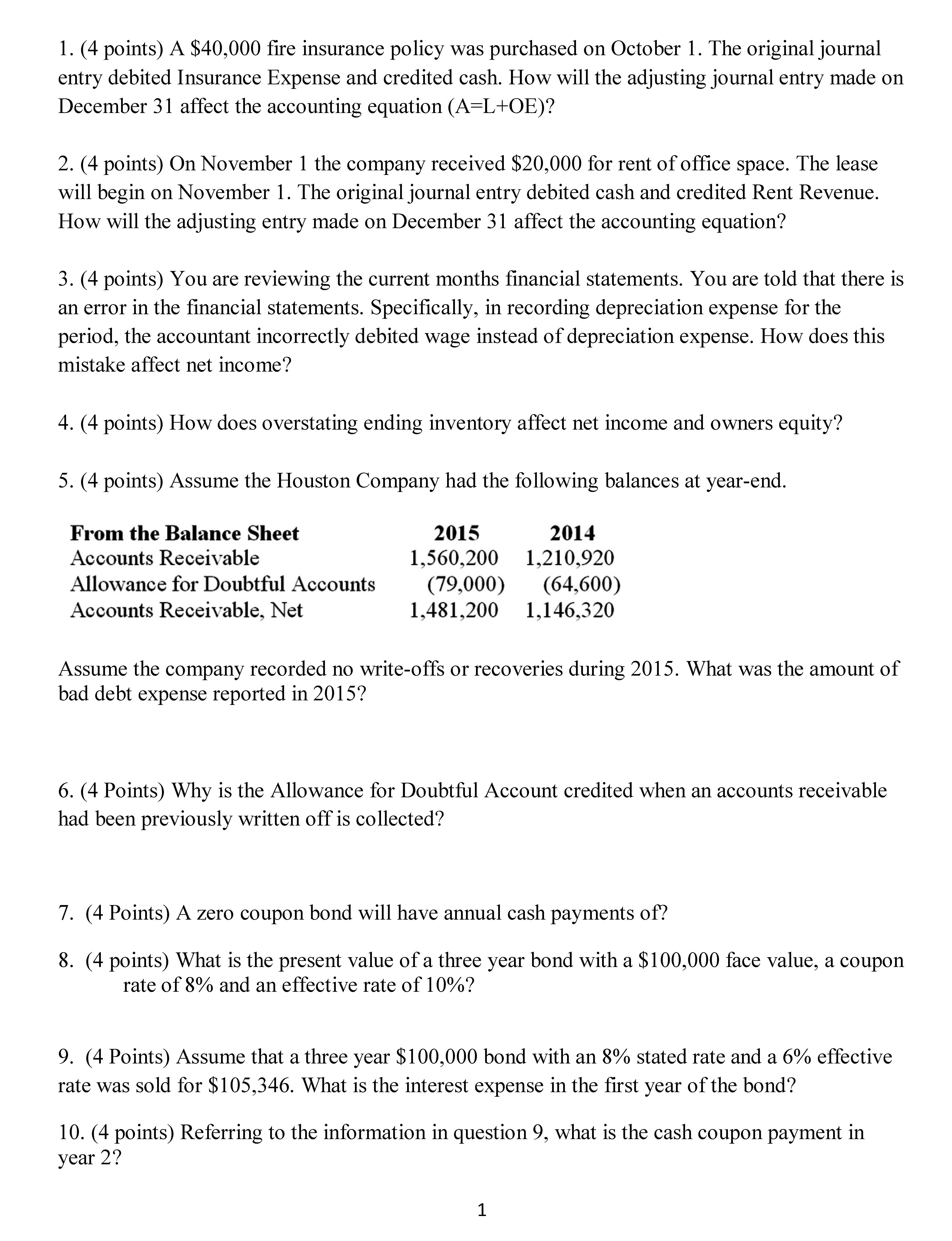 1 1. (4 points) A $40,000 fire insurance policy was purchased on O...