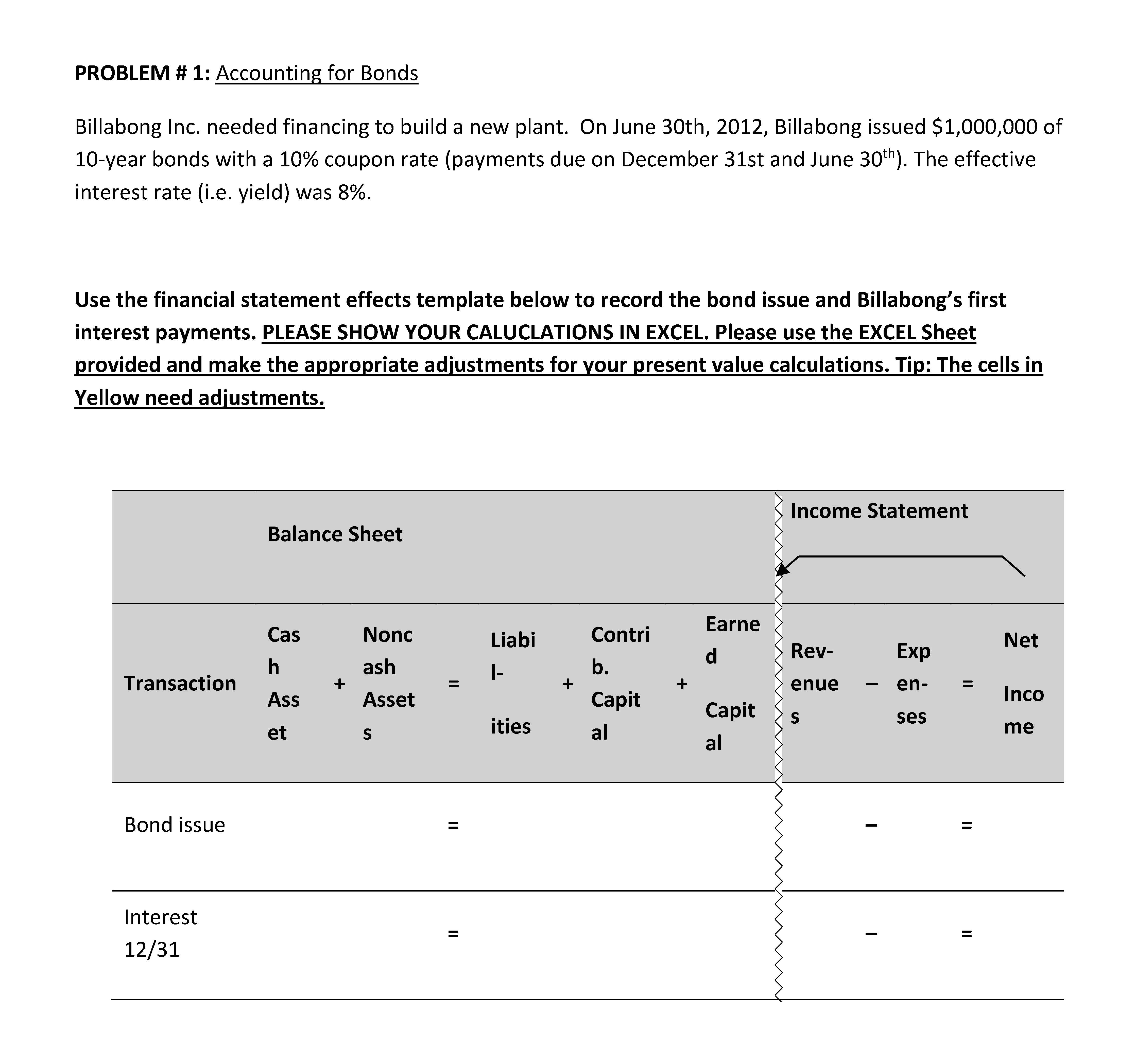 PROBLEM # 1: Accounting for Bonds Billabong Inc. needed financing...