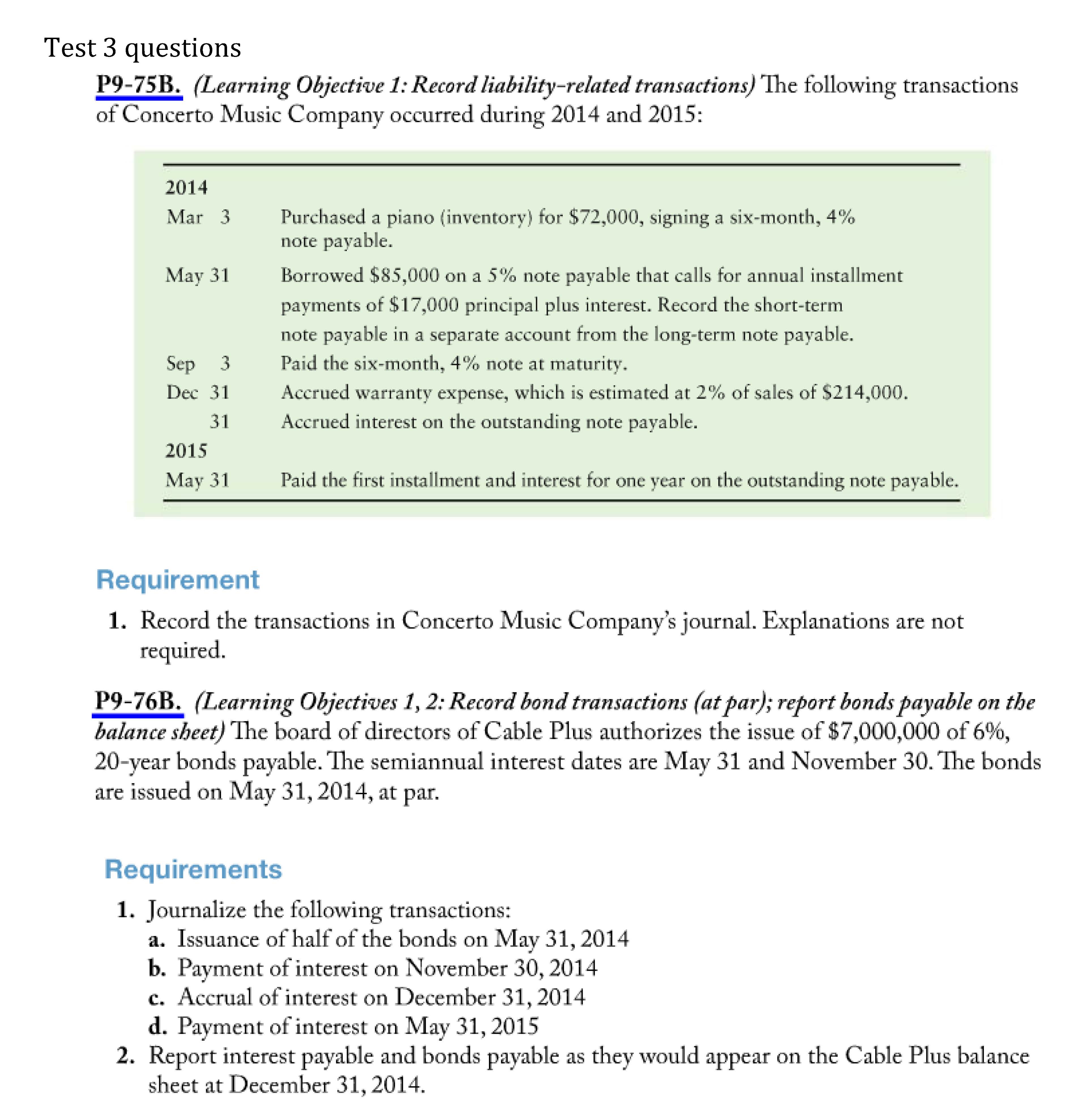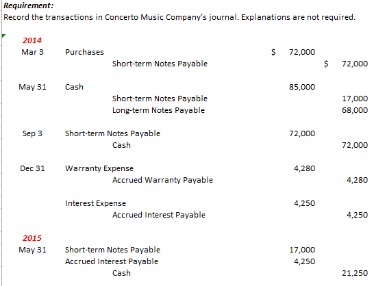 Purchased a piano (inventory) for $72,000, signing a six-month, 4%...
