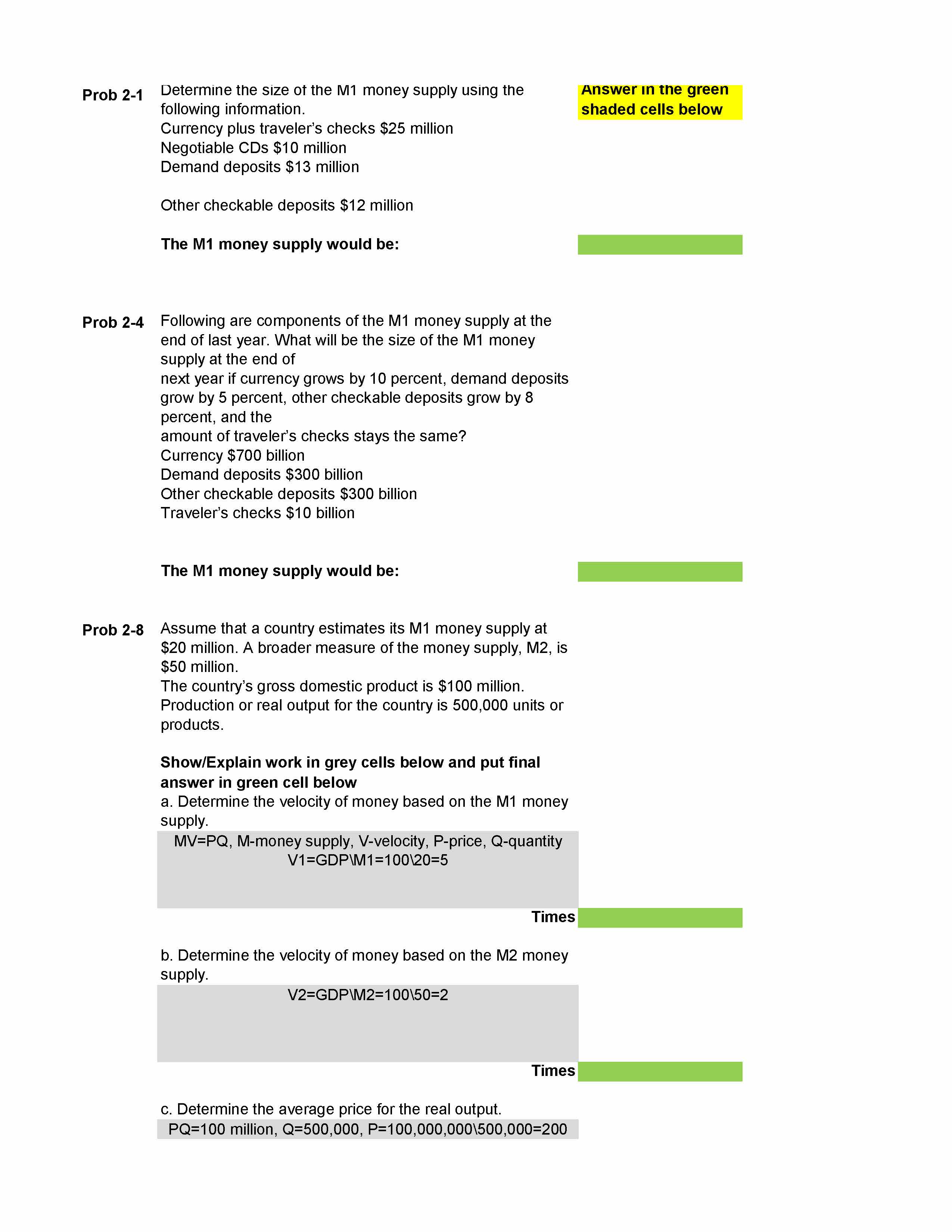 Prob 2-1 Determine the size of the M1 money supply using the follo...