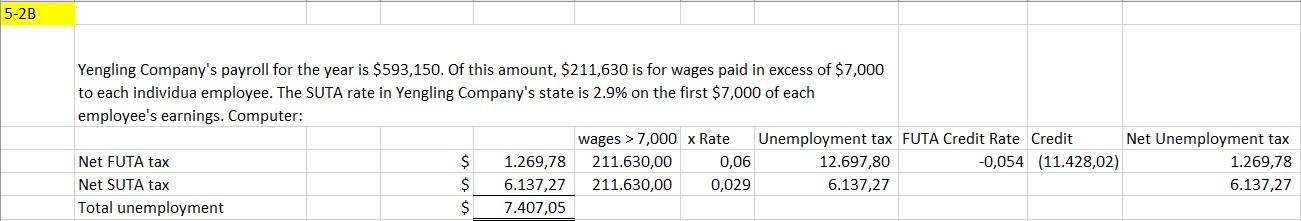 5-2B Yengling Company's payroll for the year is $59...