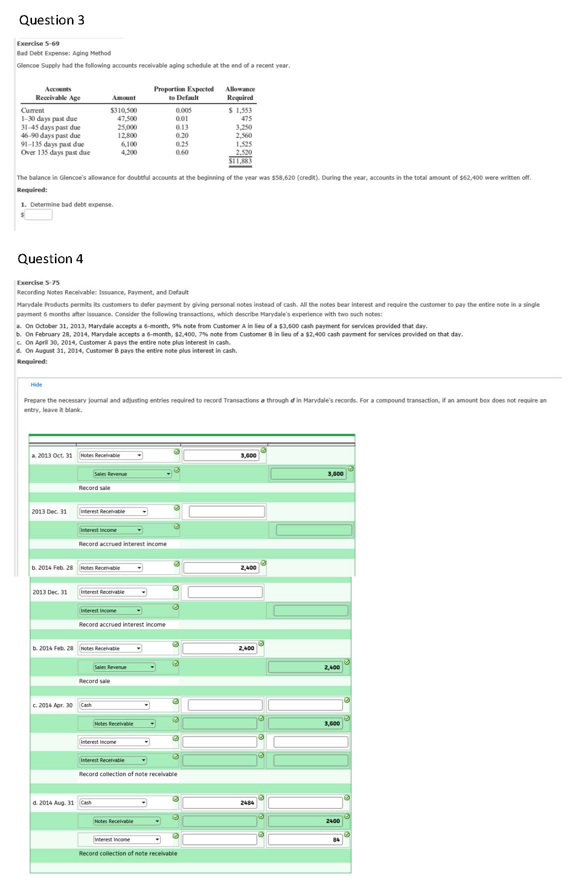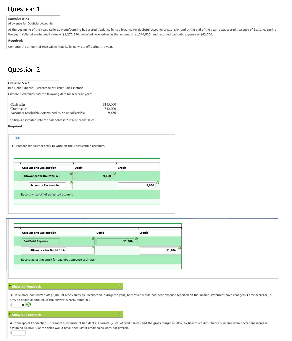 Question 1 Exercise 5-71 Allowance for Doubtful Accounts At the ...