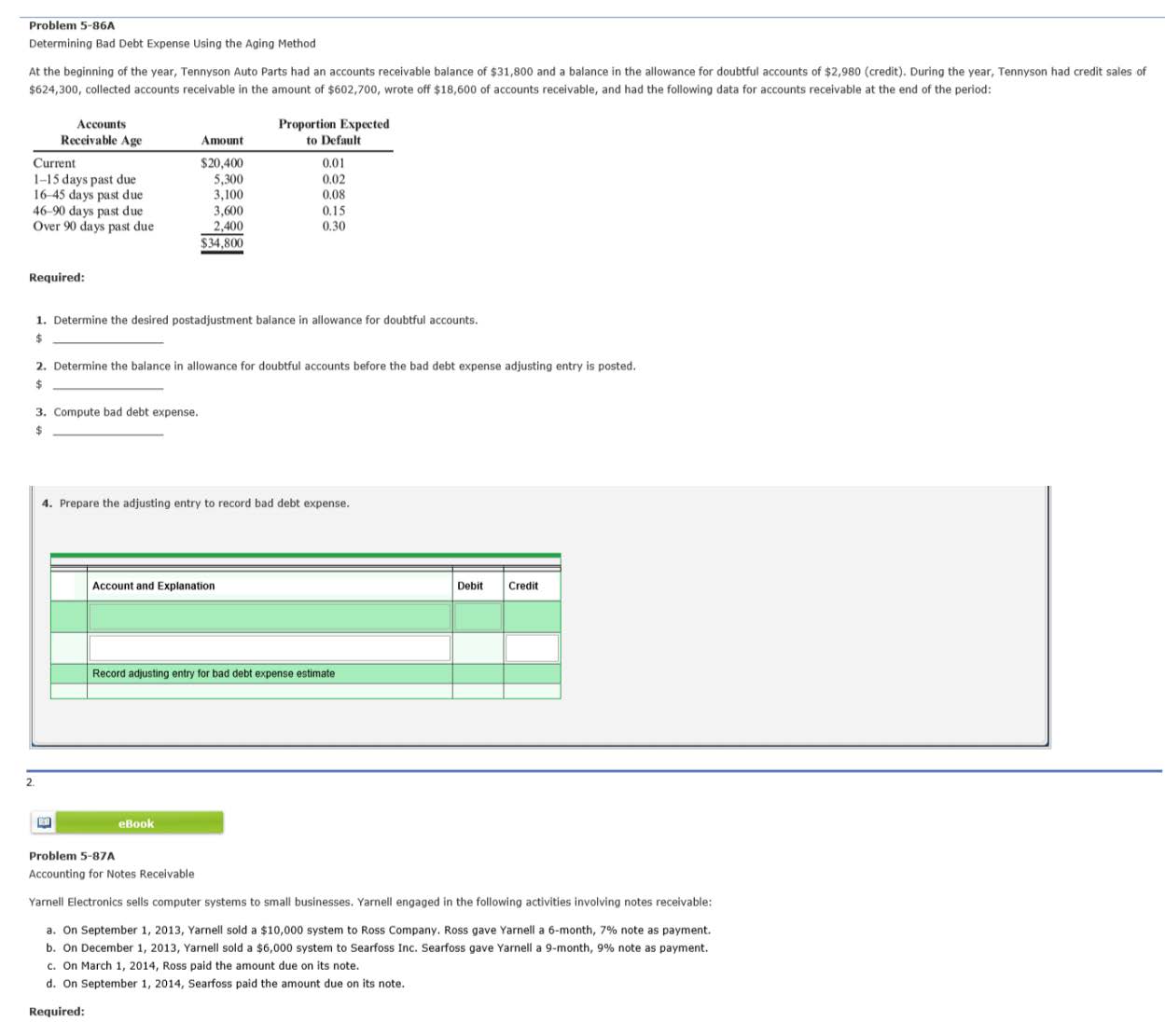 Problem 5-86A Determining Bad Debt Expense Using the Aging Method ...