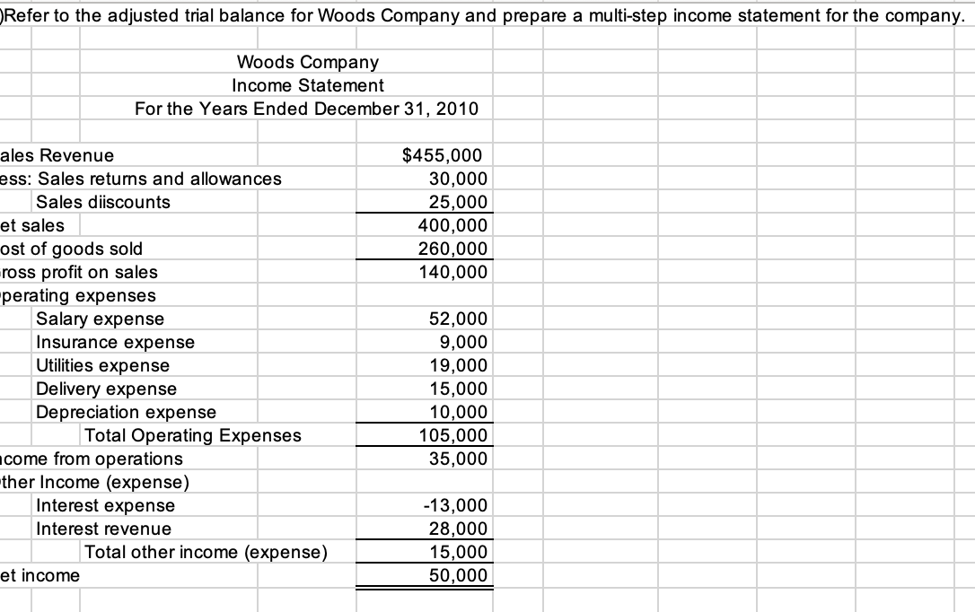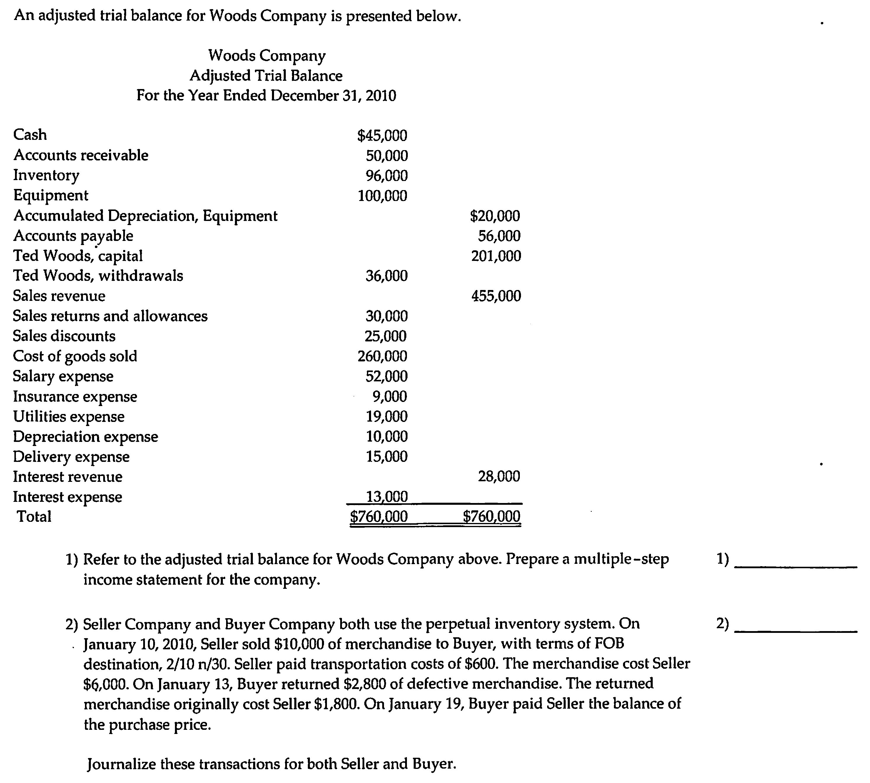 An adjusted trial balance for Woods Company is presented below. Wo...