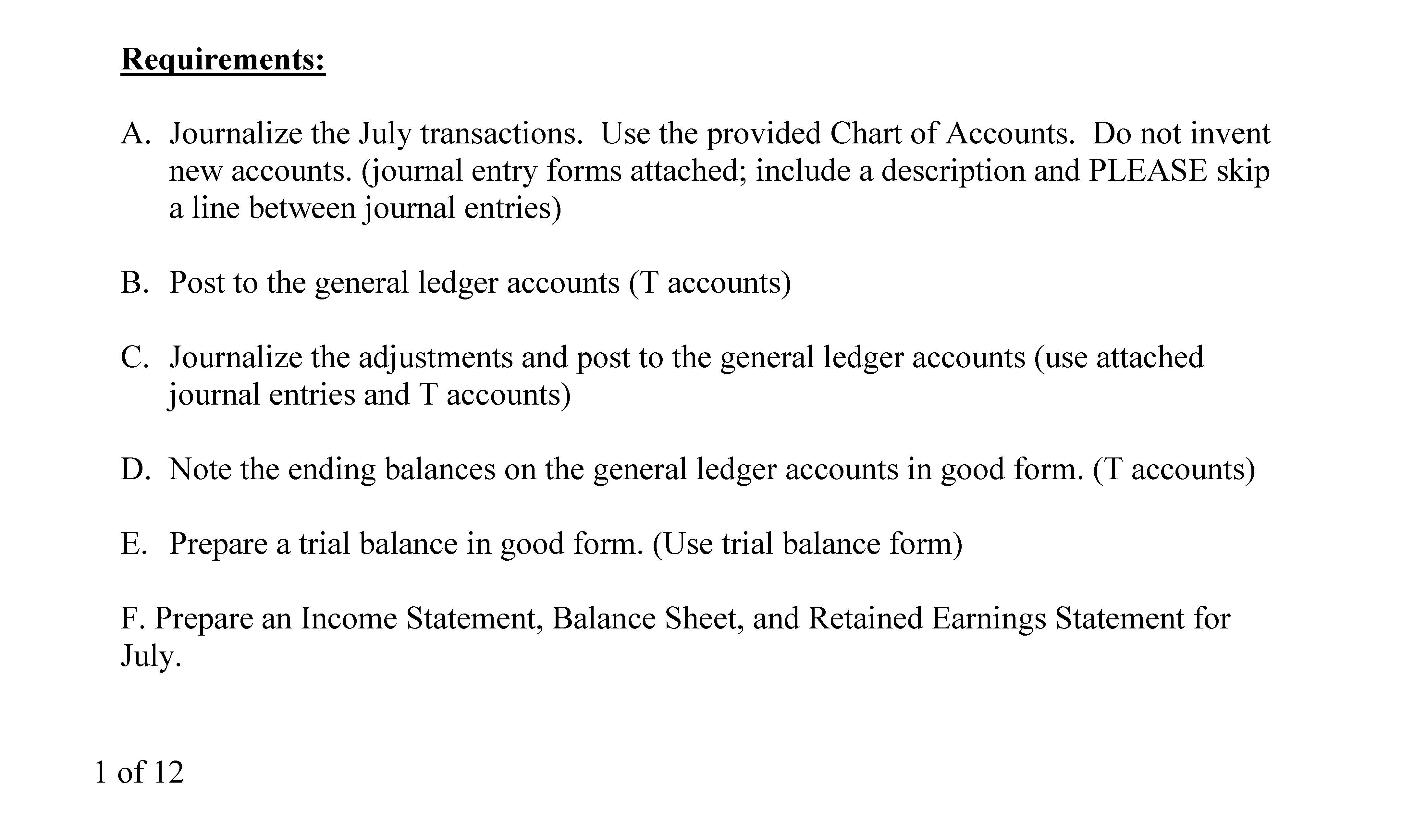 1 Requirements: A. Journalize the July transactions. Use the provi...