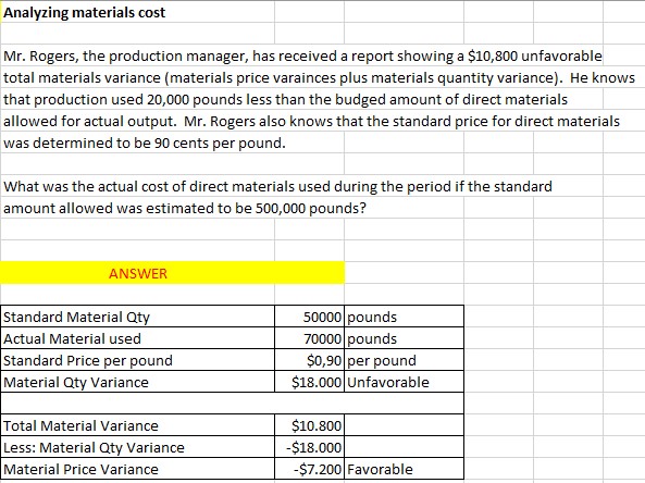 E 19-22 Analyzing materials cost Mr. Rogers, the production m...