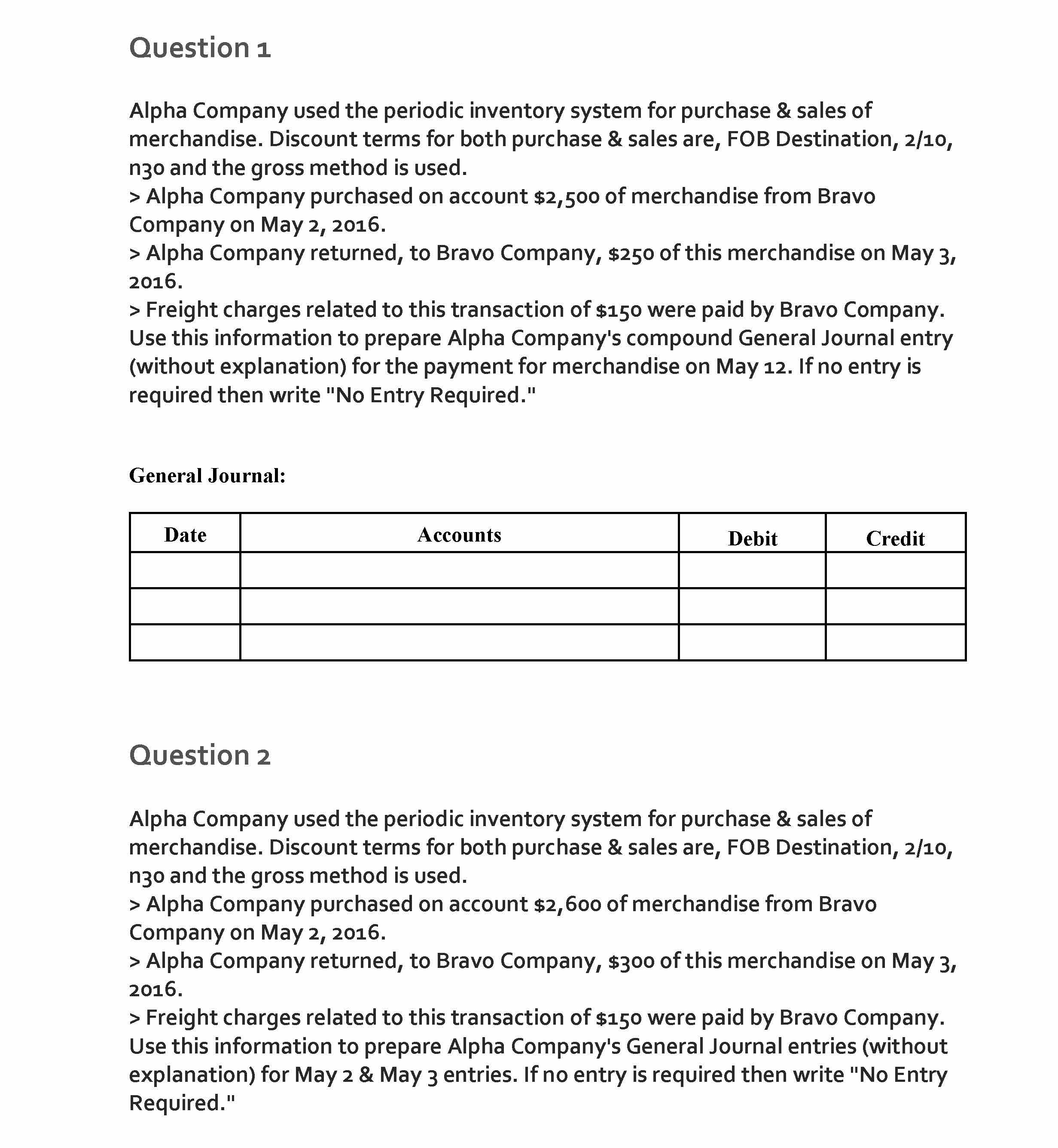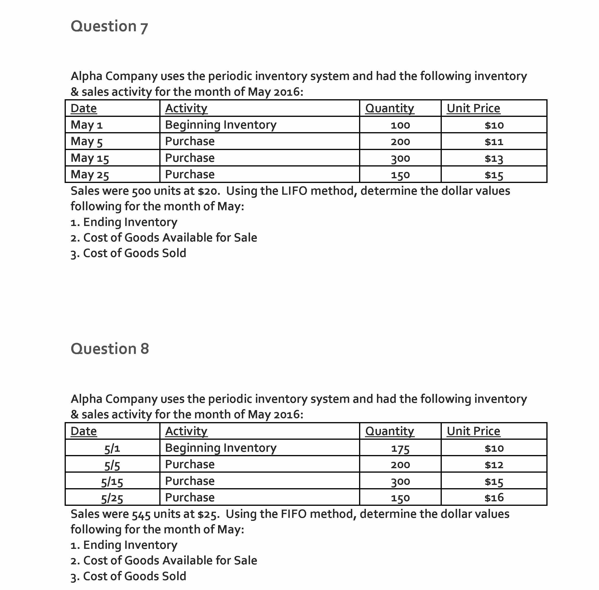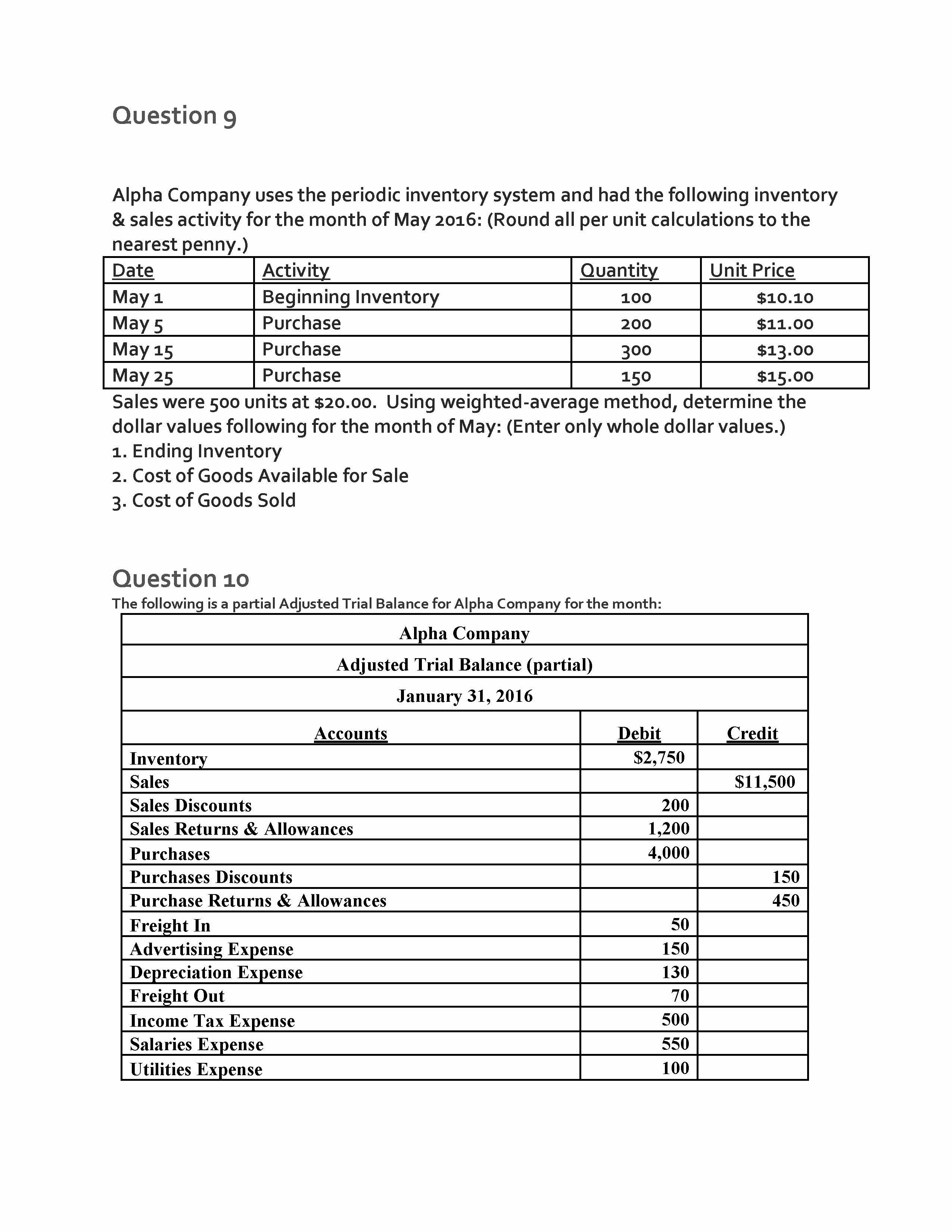 Question 1 Alpha Company used the periodic inventory system for pu...