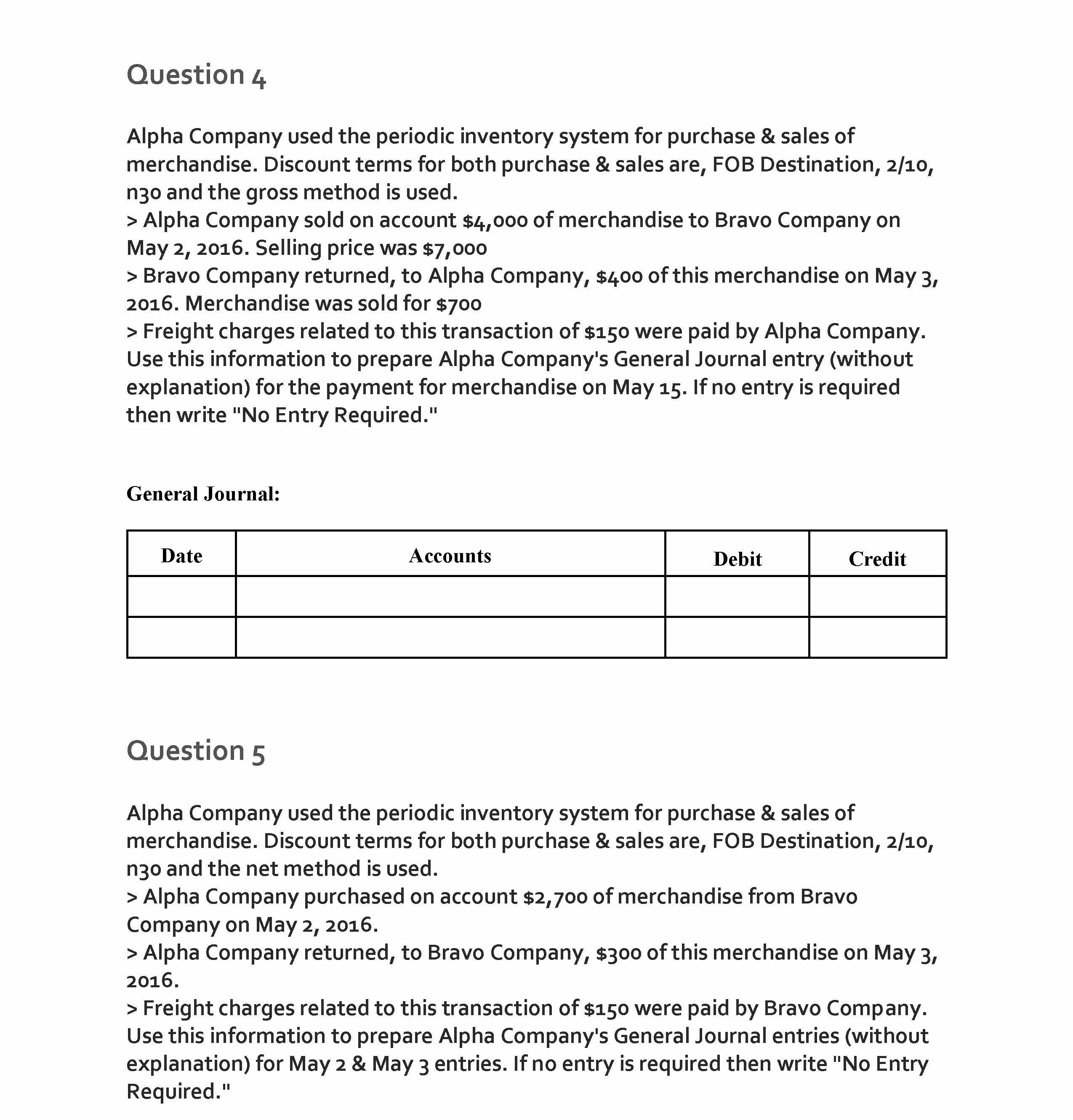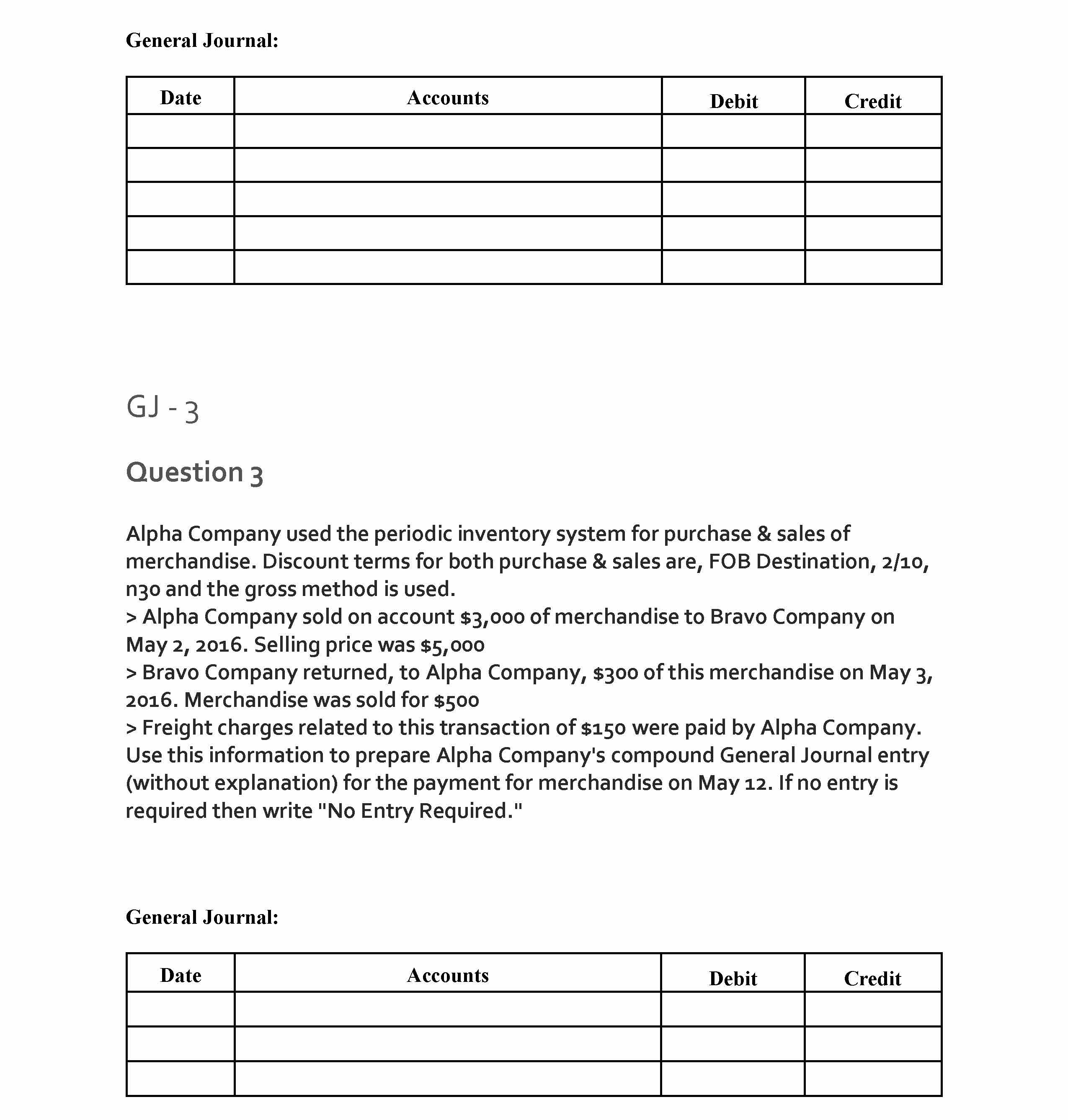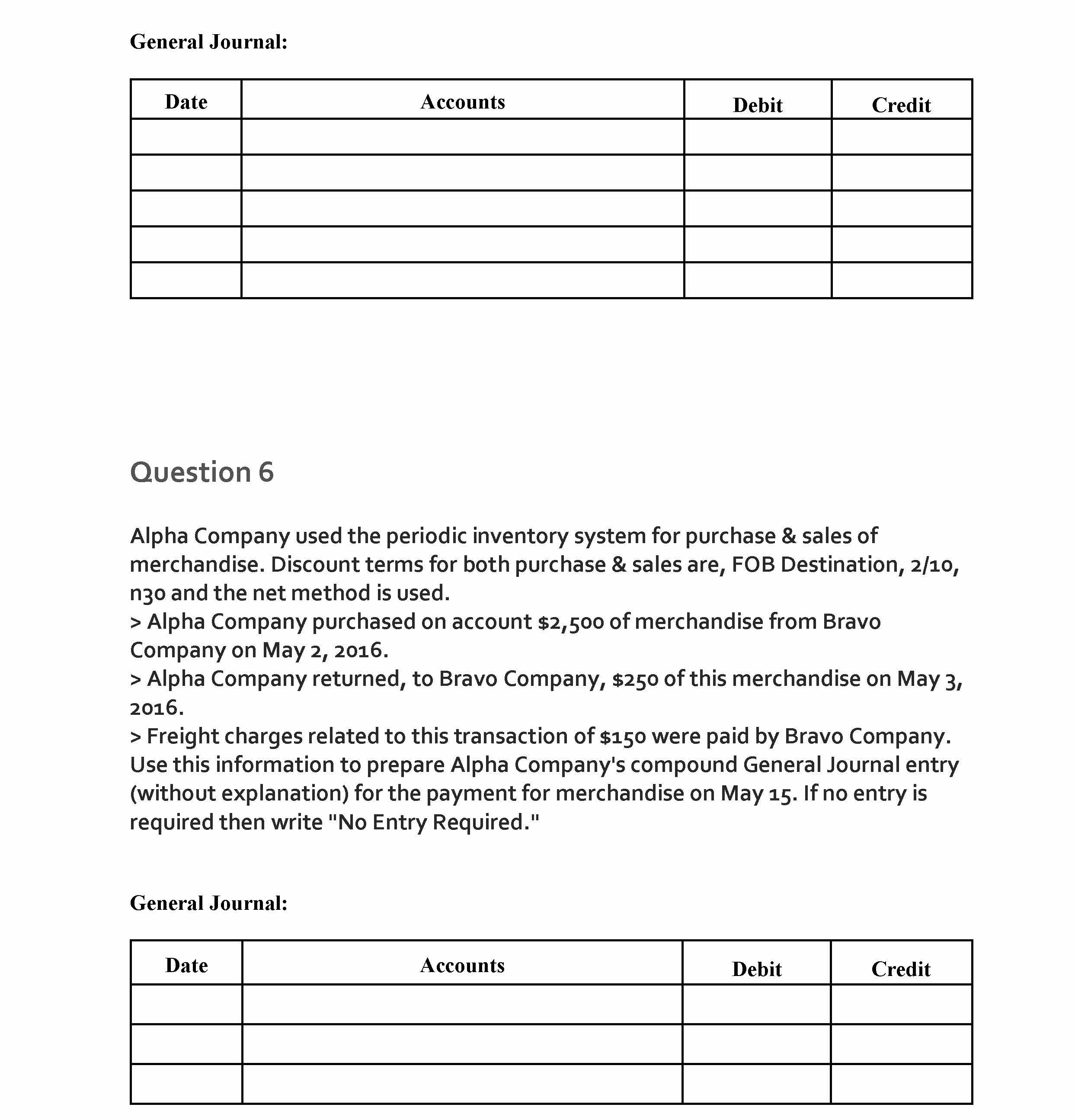 Question 1 Alpha Company used the periodic inventory system for pu...
