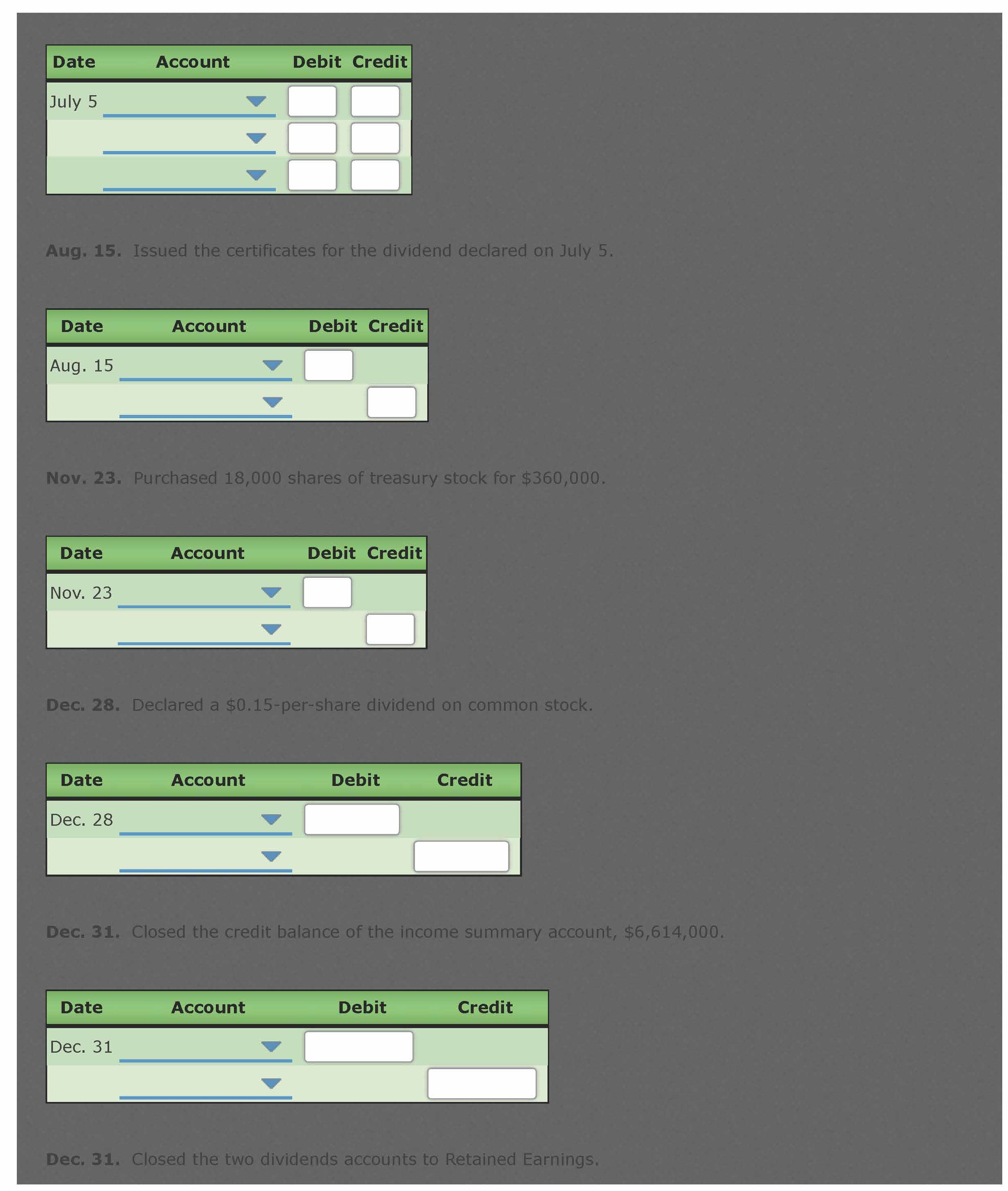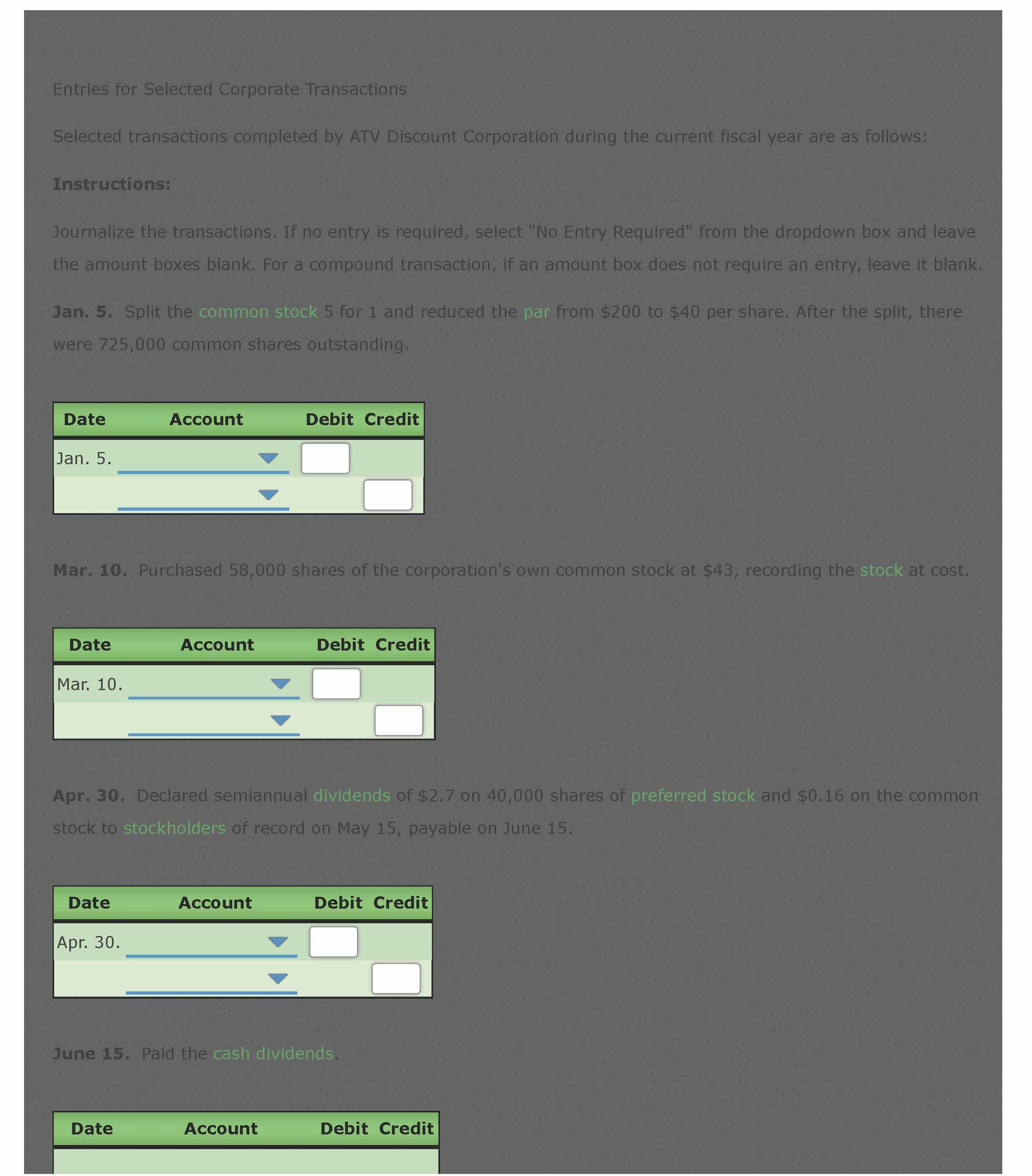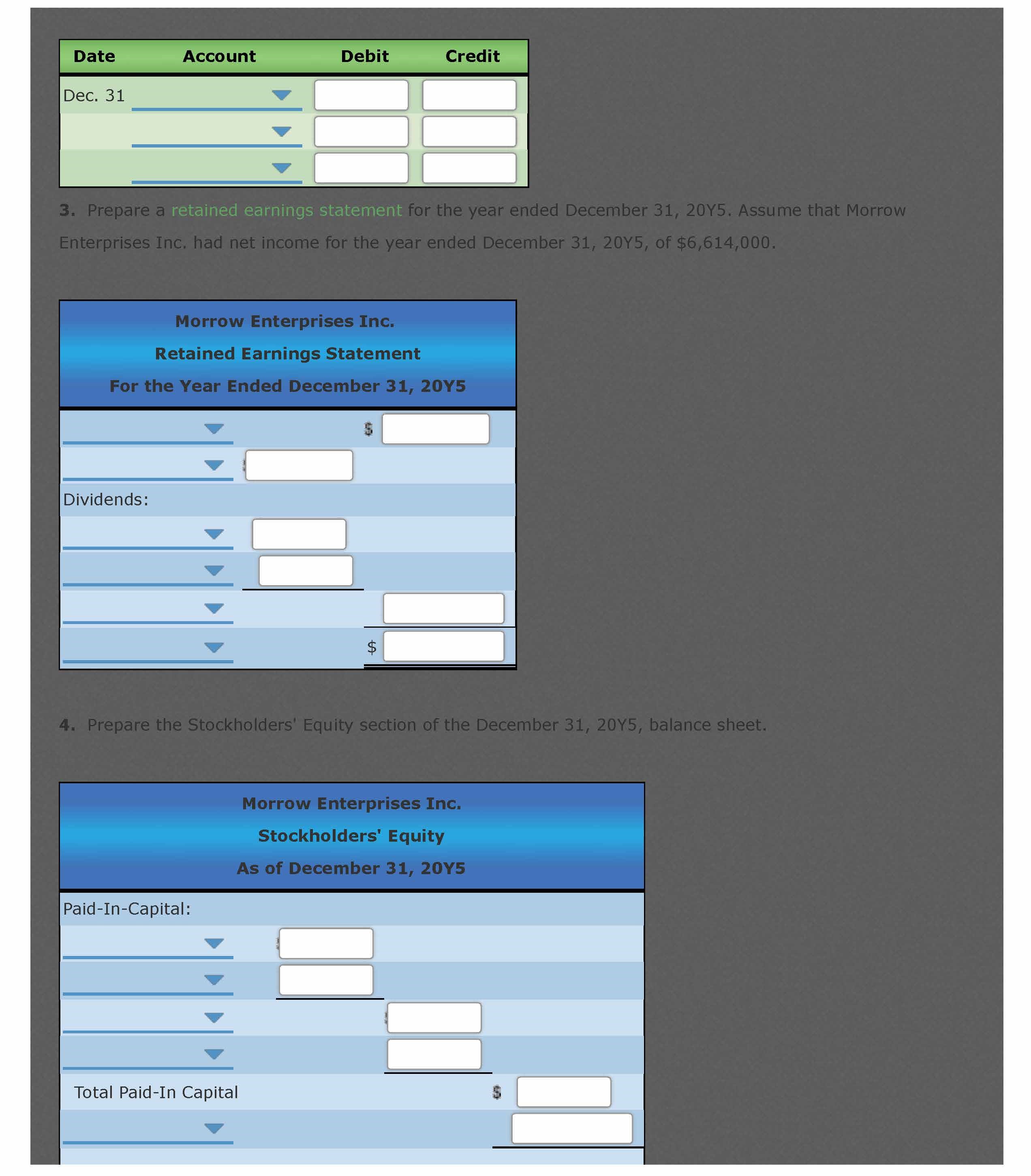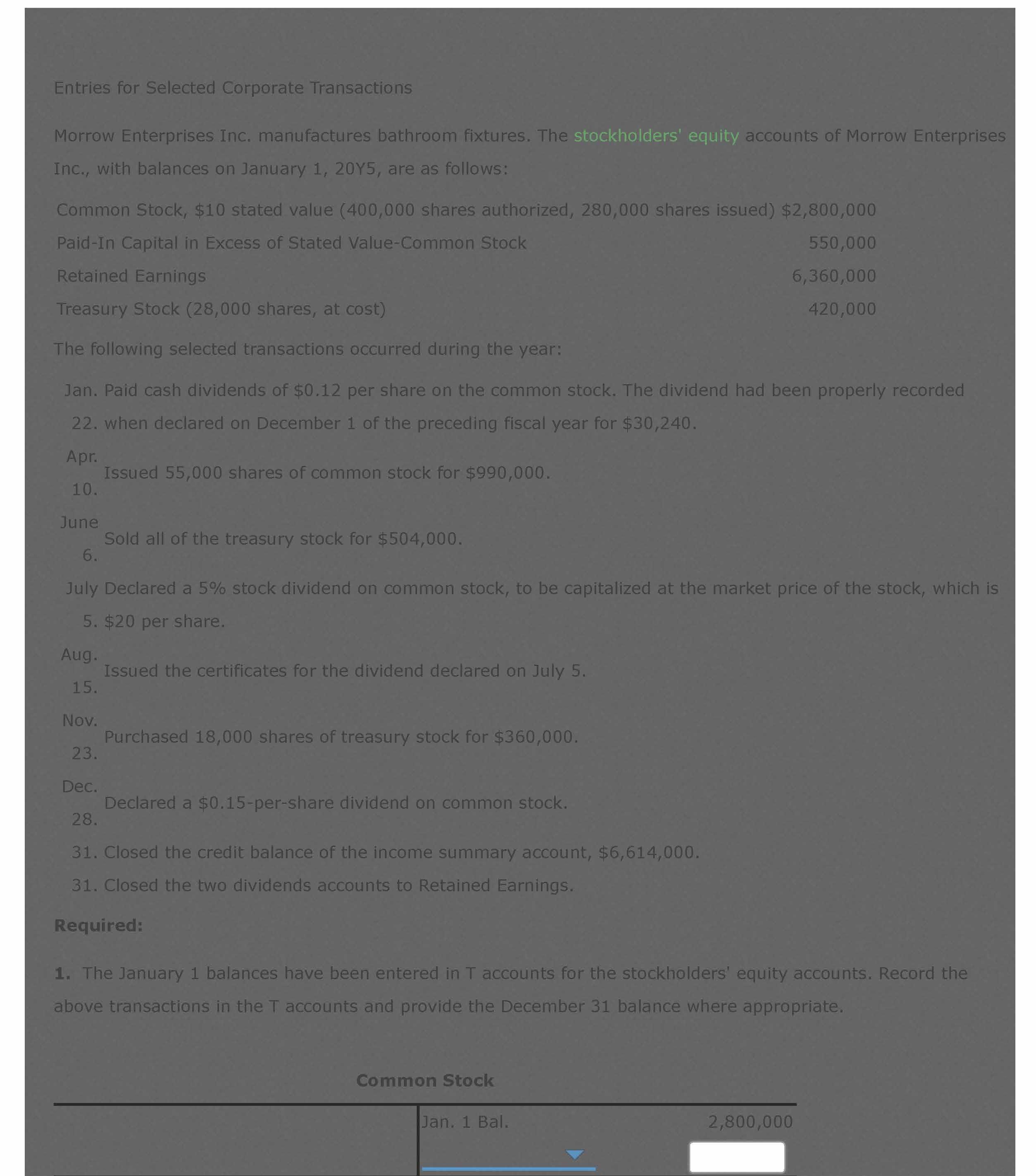 Entries for Selected Corporate Transactions Morrow Enterprises Inc...