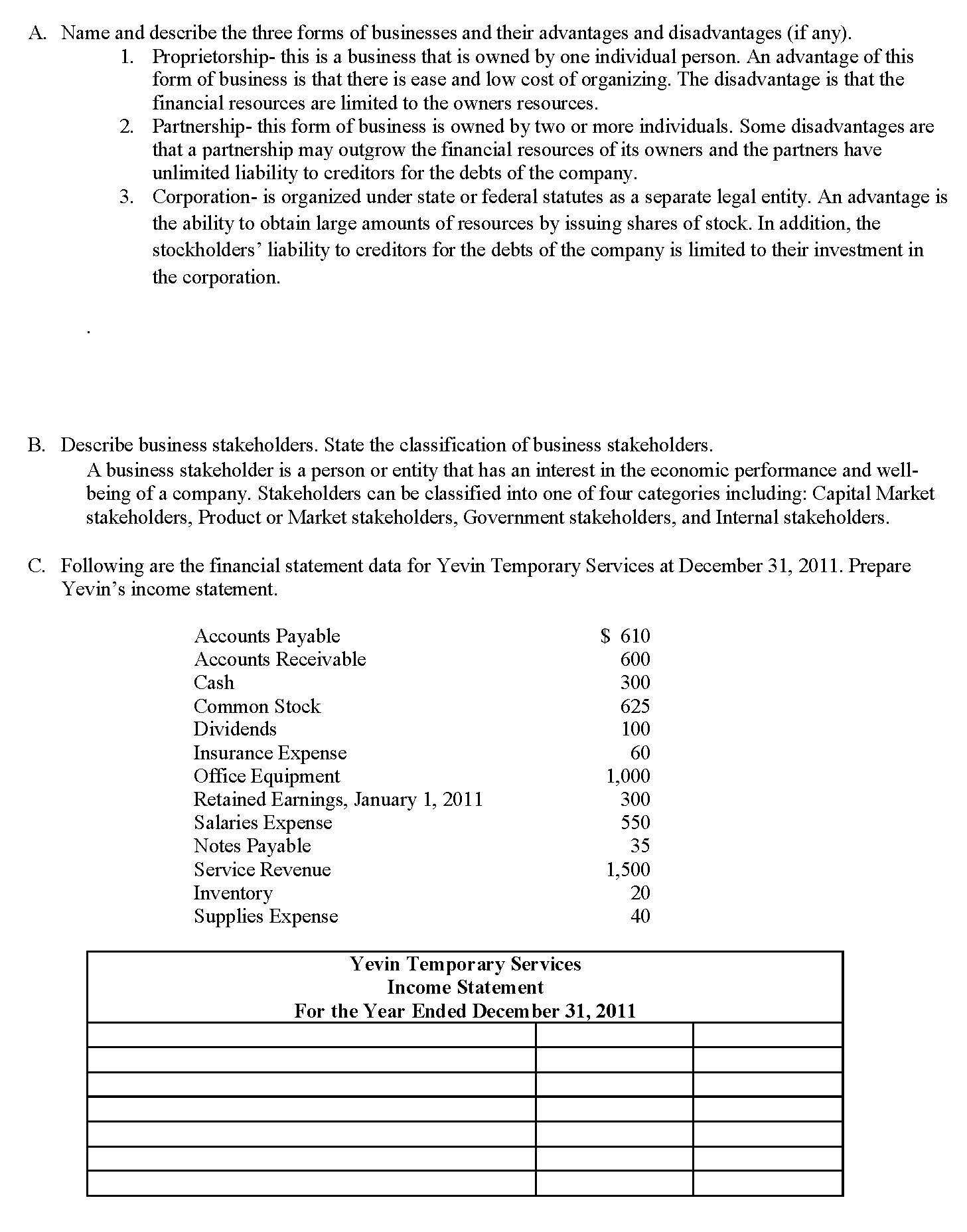 A. Name and describe the three forms of businesses and their advant...